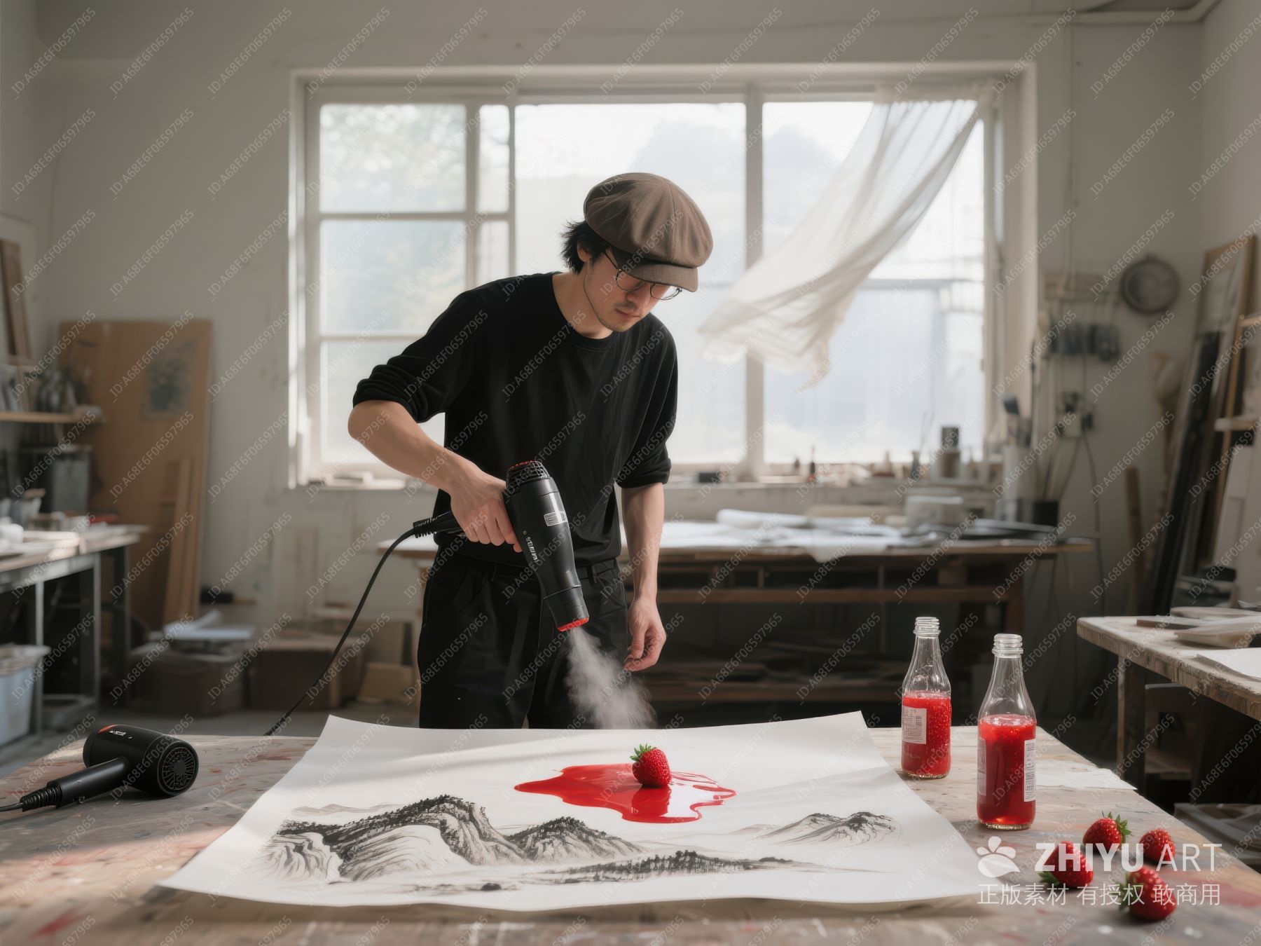 一位红发卷发的女孩站在类似家庭设计工作室的地方,她