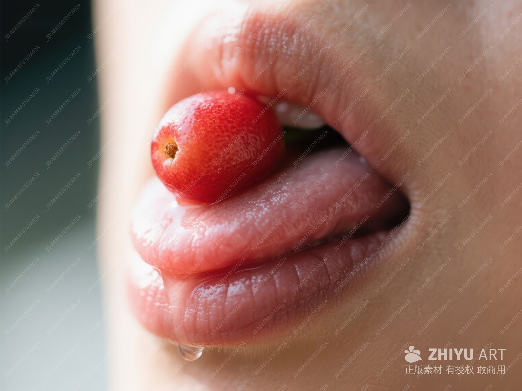 樱桃入口,唇边水滴 751