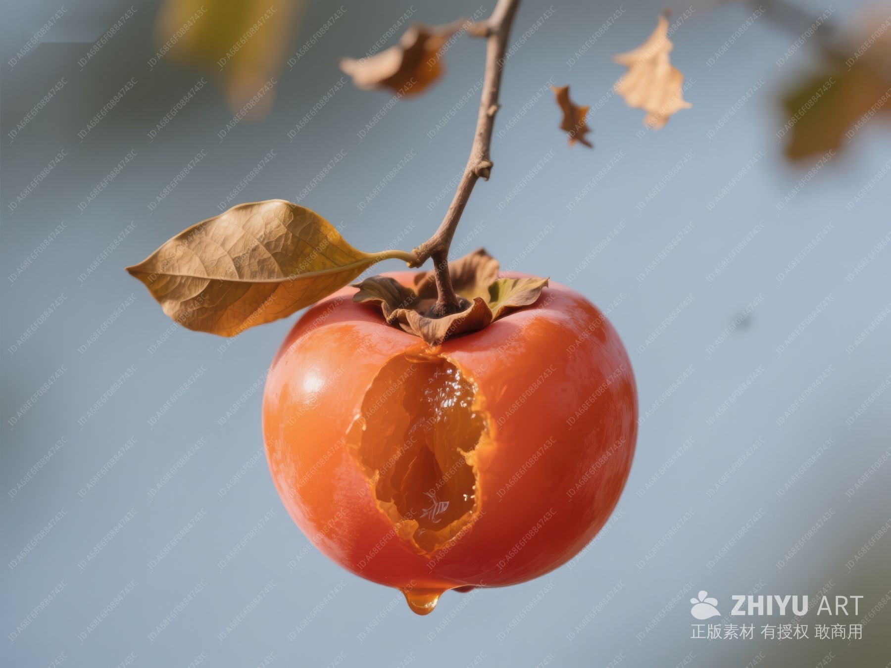 新鲜柿子部分剥皮,露出橙色果肉 679