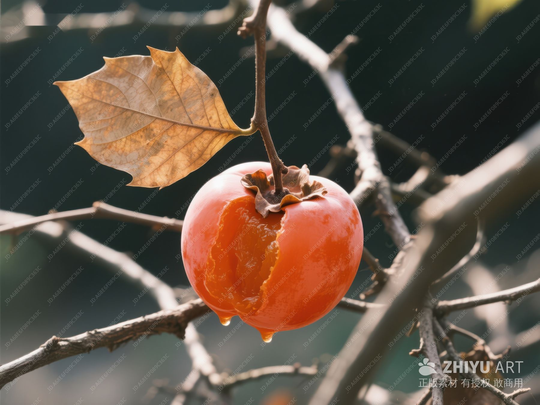 新鲜柿子部分剥皮,露出橙色果肉 679