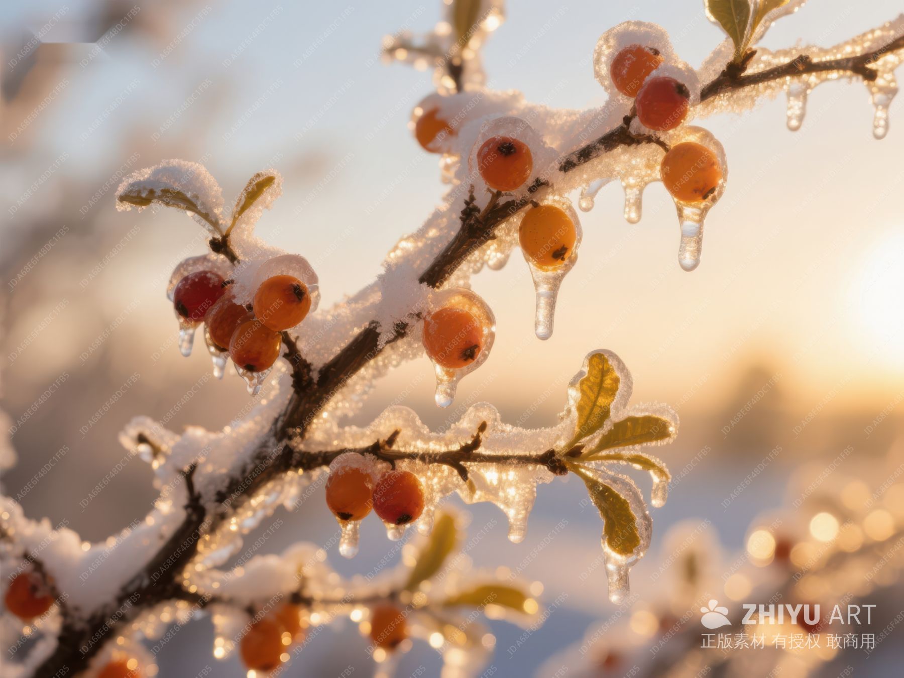 冰霜覆盖的浆果枝在晨光中闪耀 20