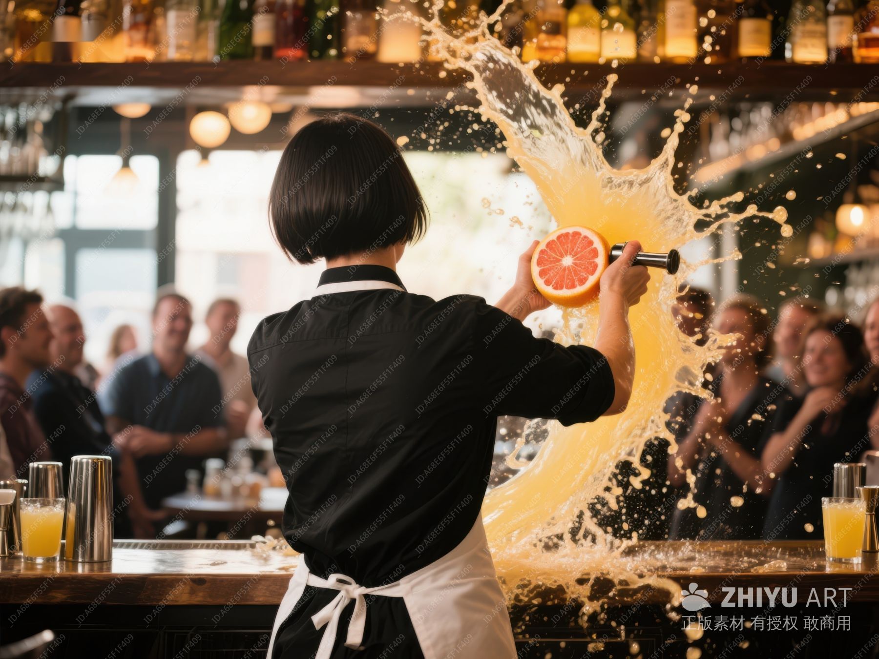 调酒师挤橙汁,液体飞溅瞬间 161