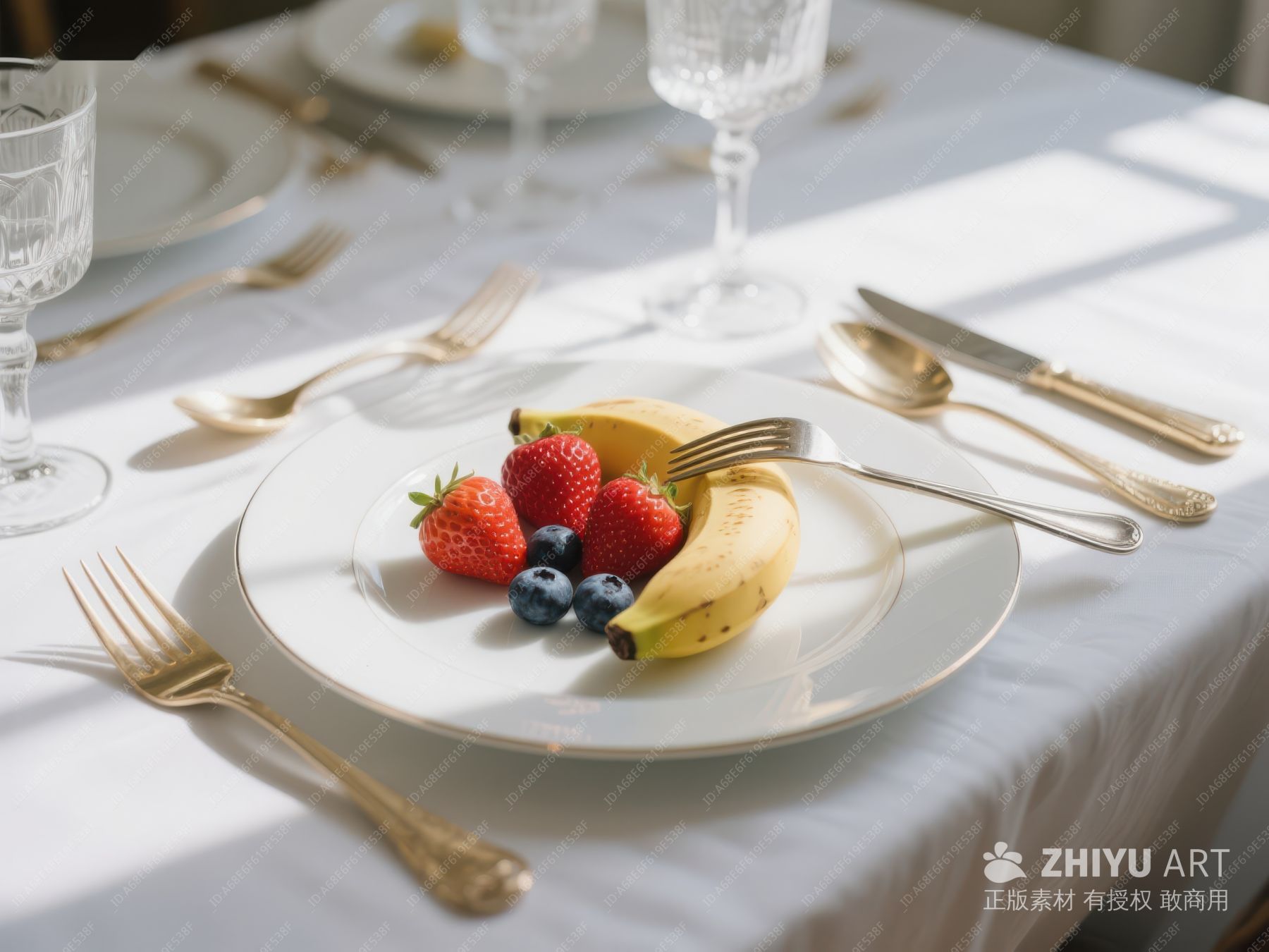 厨房台面摆放新鲜水果拼盘与果汁 184