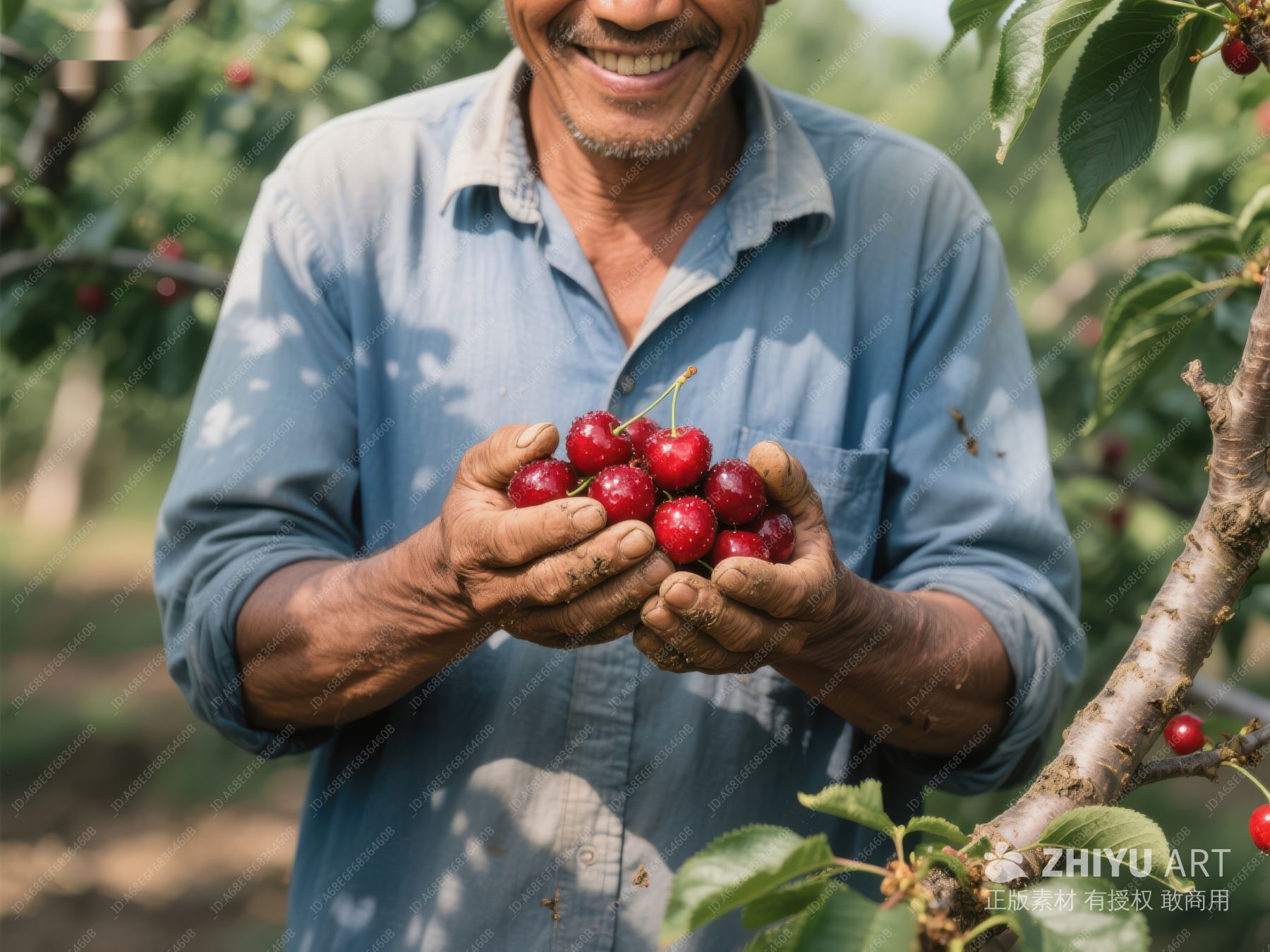 农夫手捧新鲜樱桃微笑 353