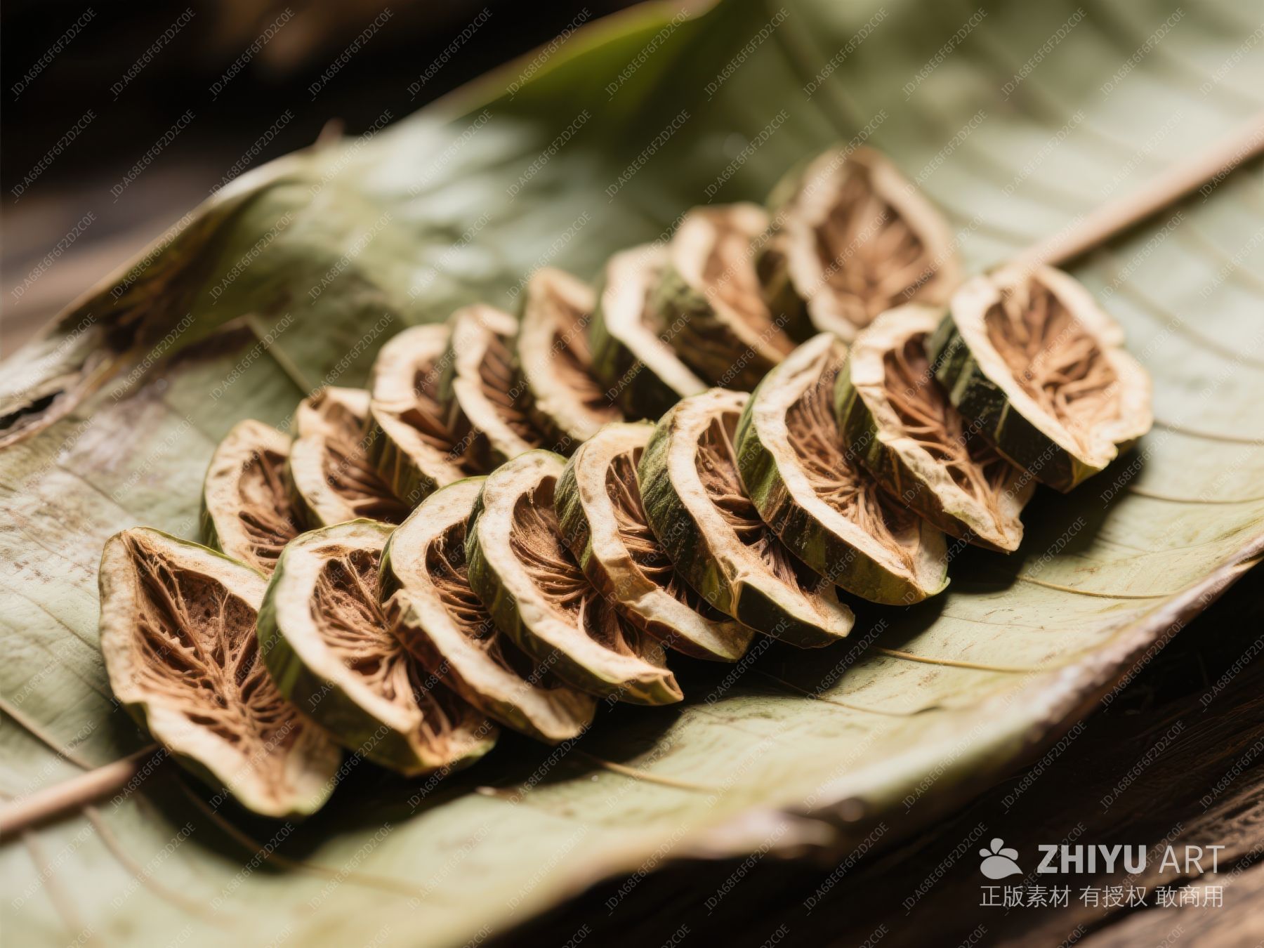 切片果实置于绿叶之上 427