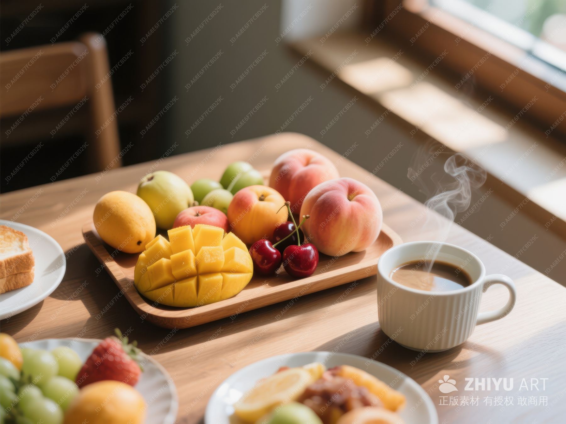 早餐水果与热饮的温馨场景 793