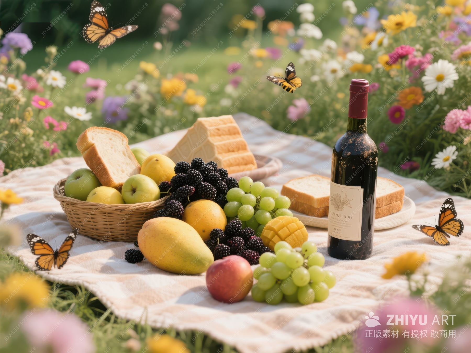 野餐布上的美食与蝴蝶 741