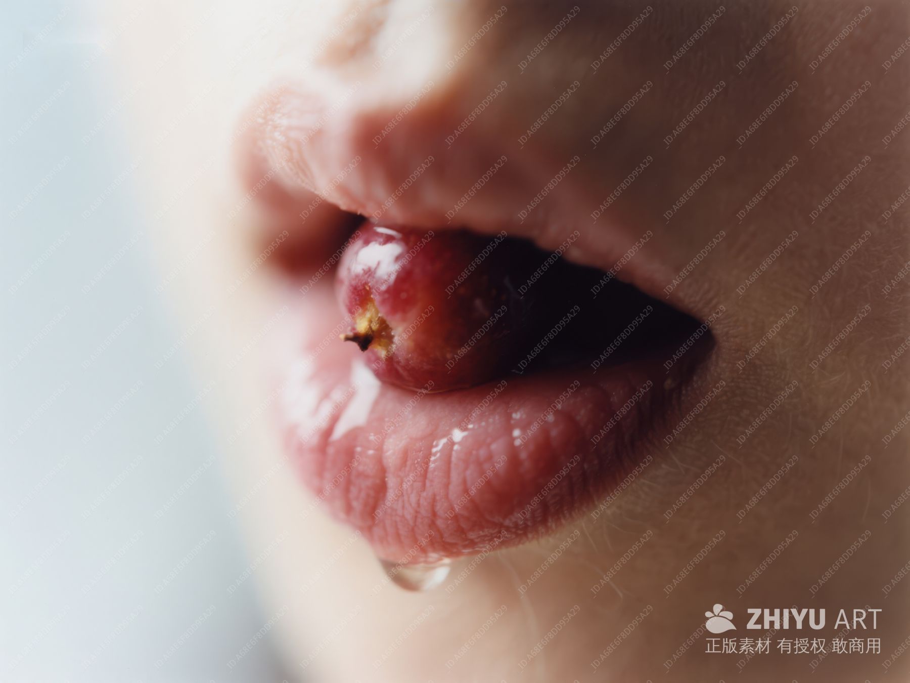 樱桃入口,唇边水滴 751