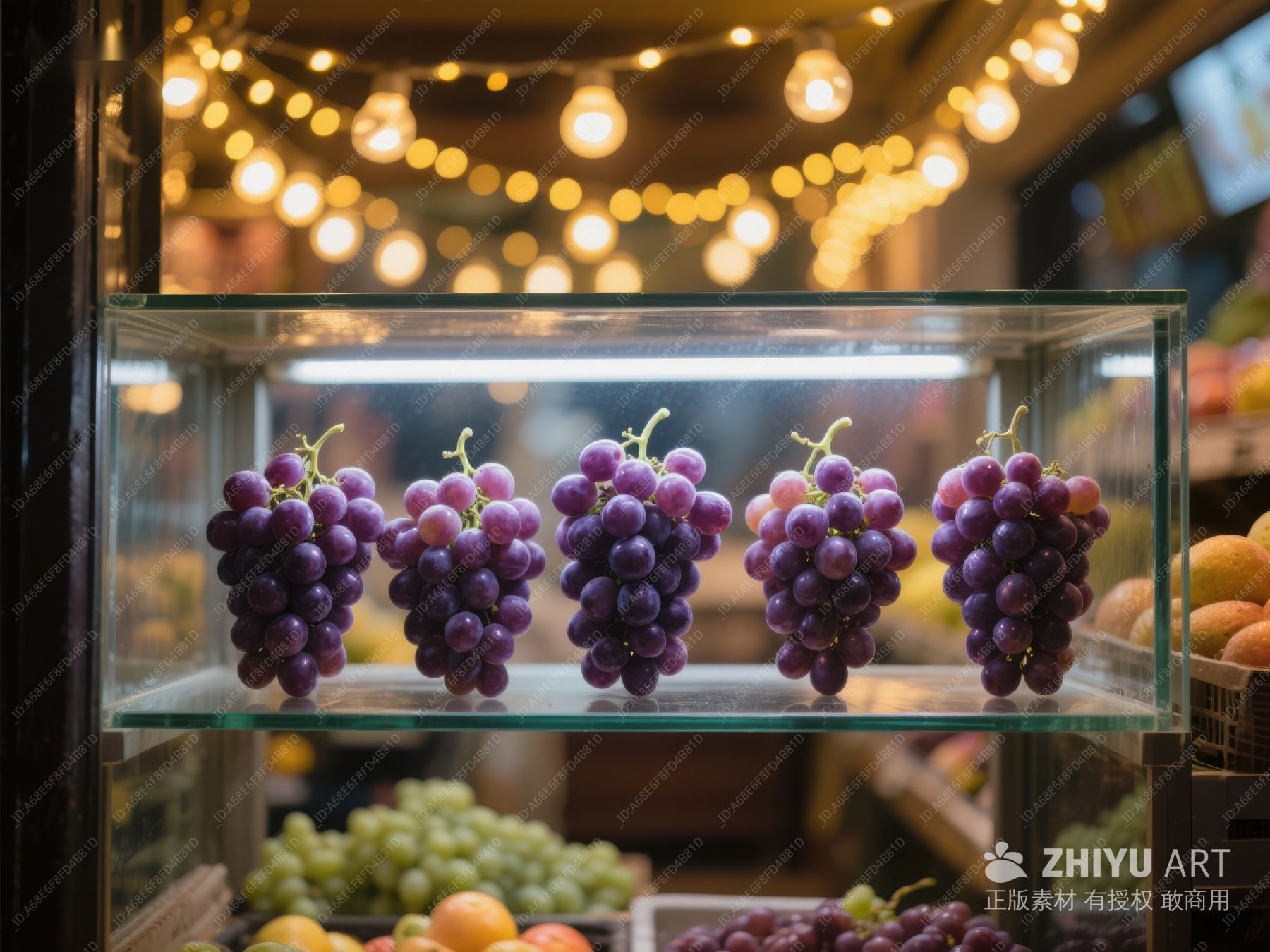 新鲜葡萄陈列于灯光装饰的水果摊 681