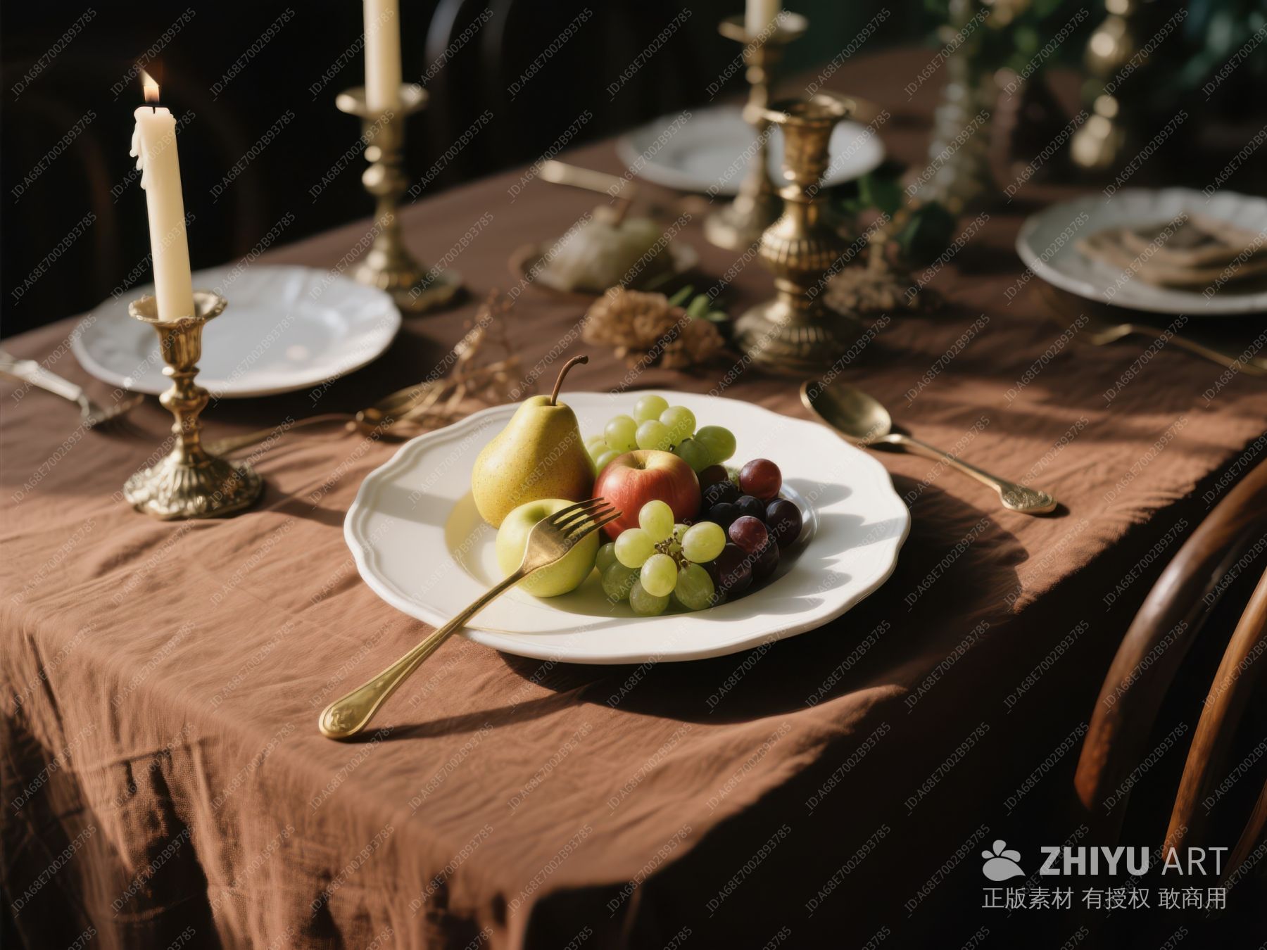 精致餐桌布置,水果与餐具的和谐搭配 321