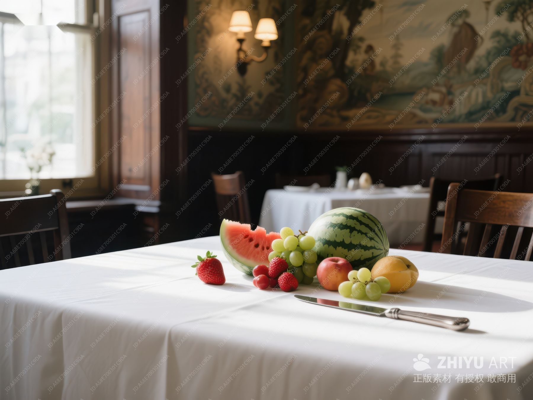 餐桌上的水果与复古餐厅 69