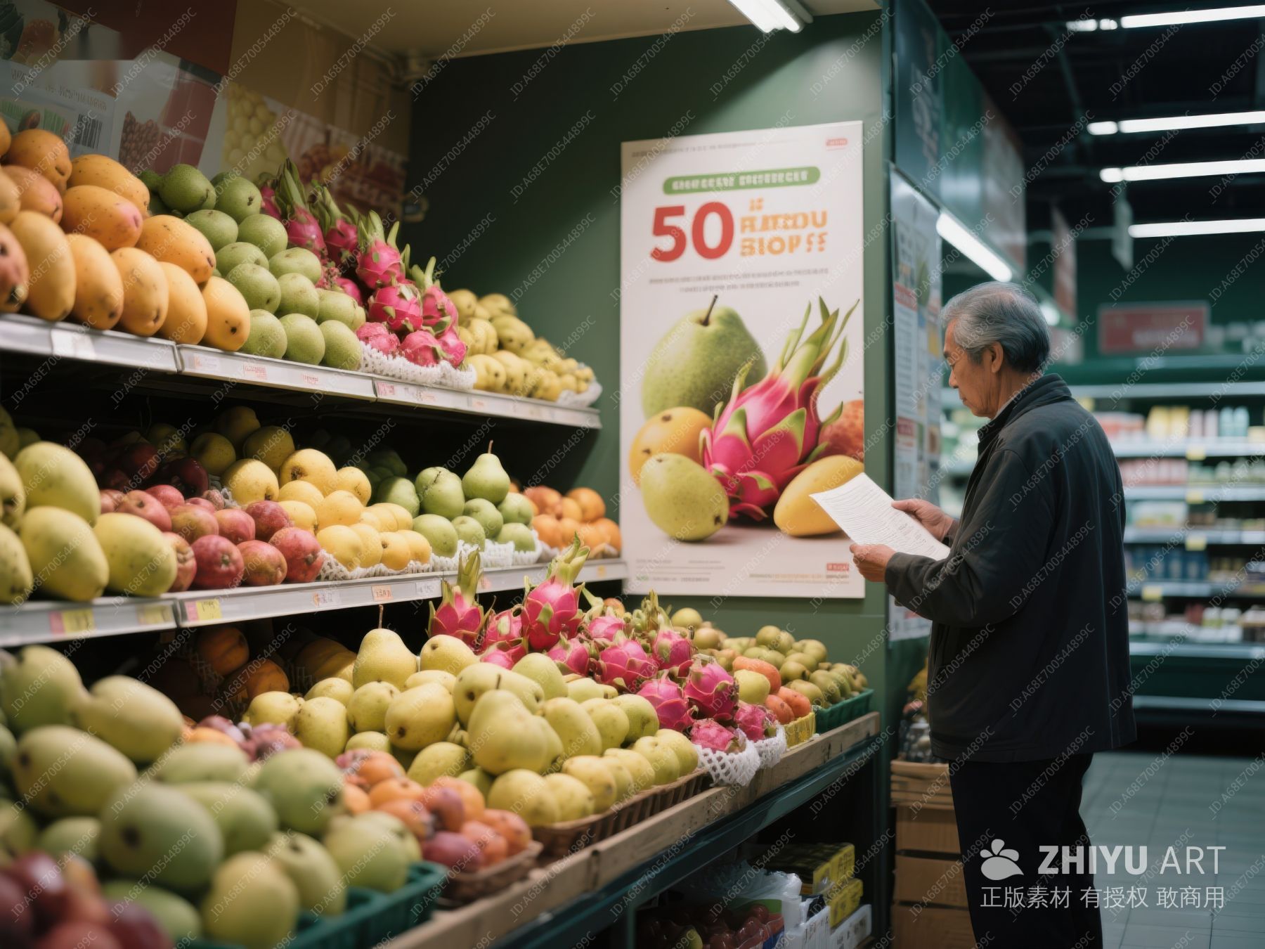 超市水果区,顾客阅读宣传海报 81