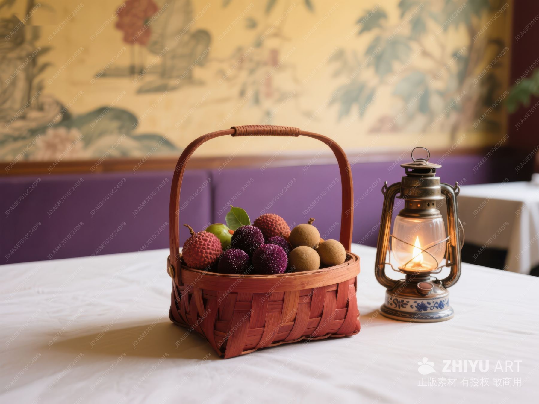 果篮与油灯的温馨场景 271