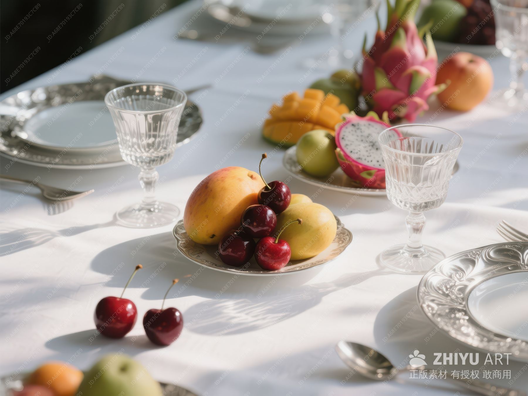 精致餐桌布置,水果与餐具的和谐搭配 321
