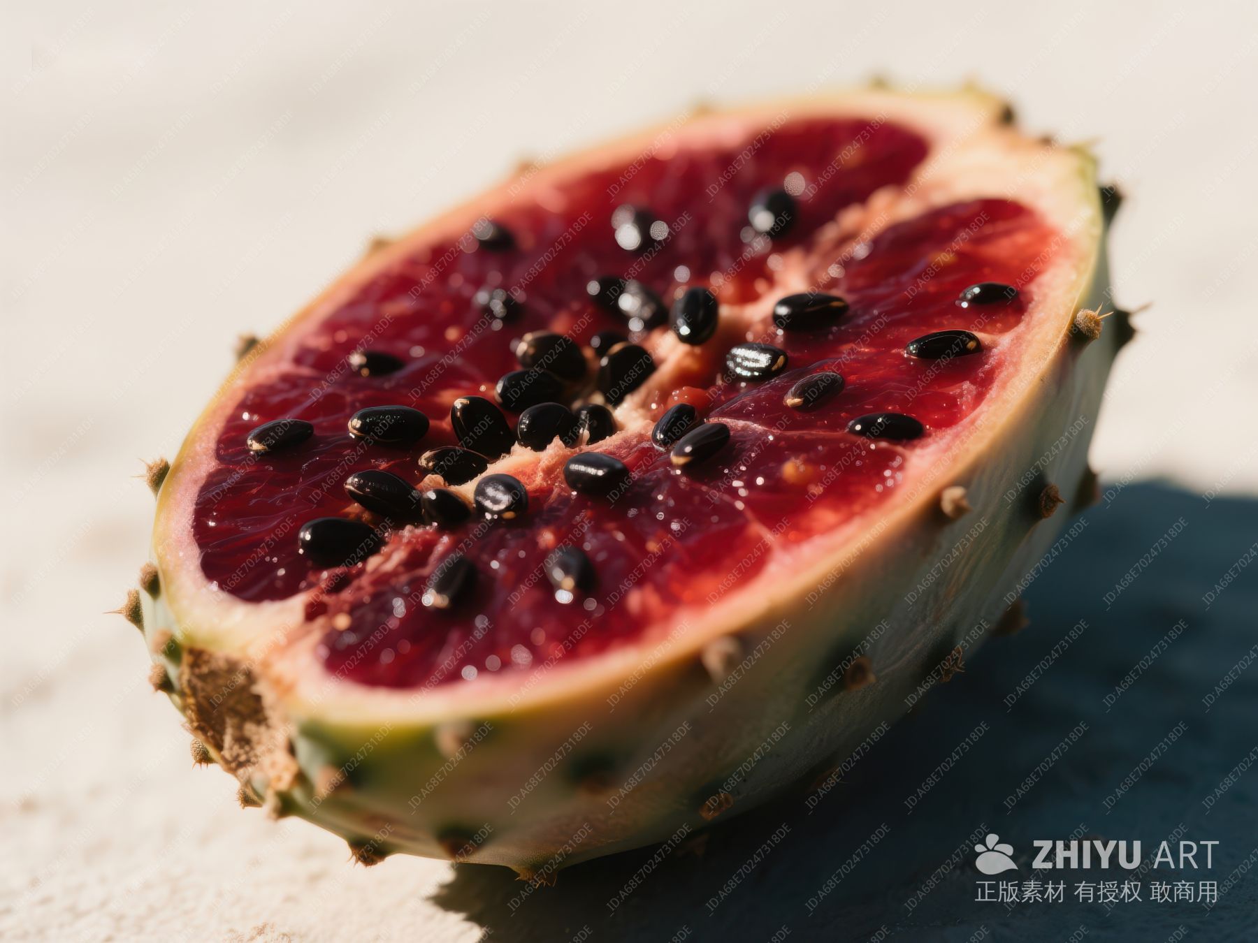 切开的仙人掌果实,流出鲜艳红色汁液 404