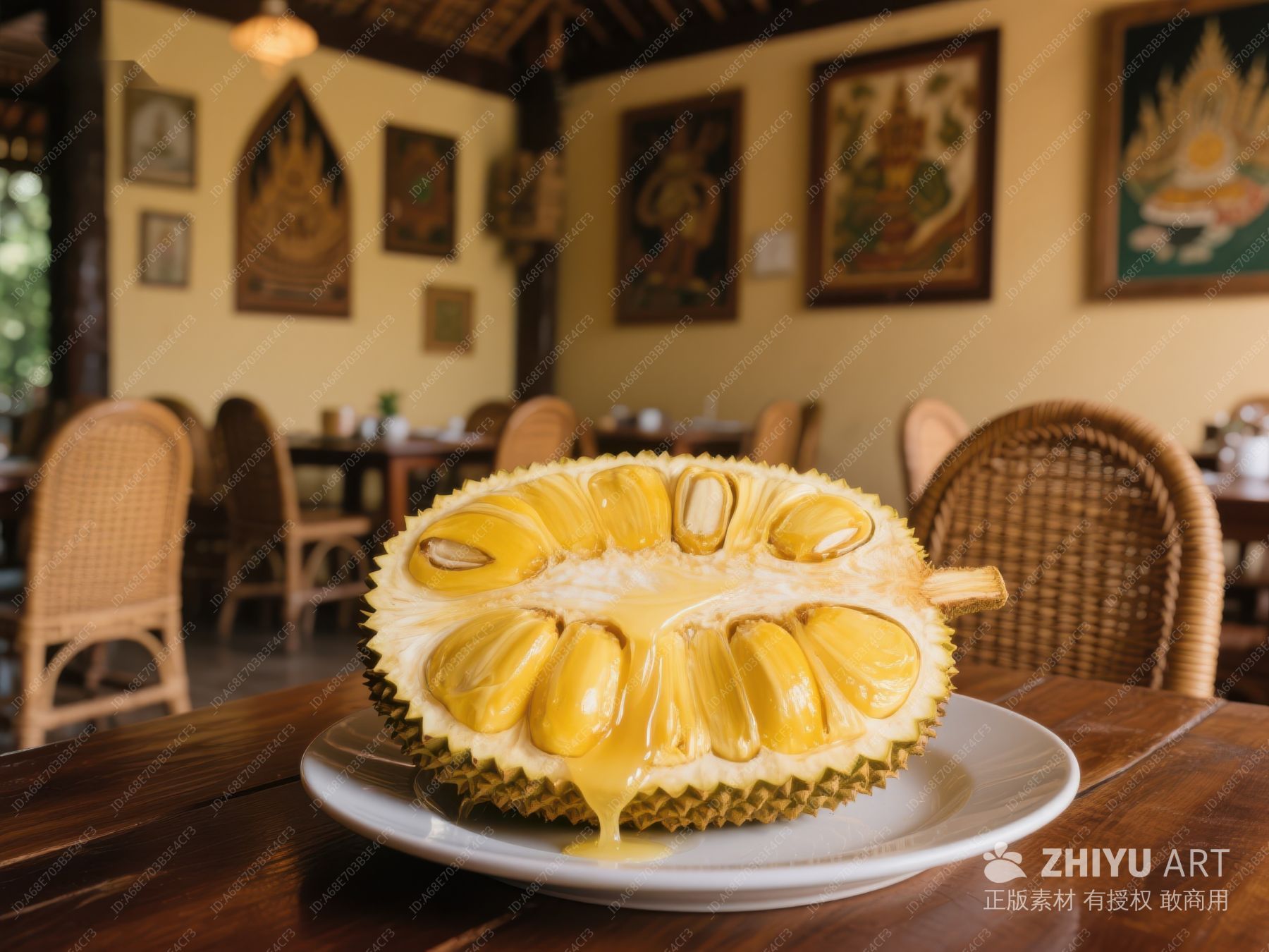 新鲜菠萝蜜切片置于木质餐桌 654