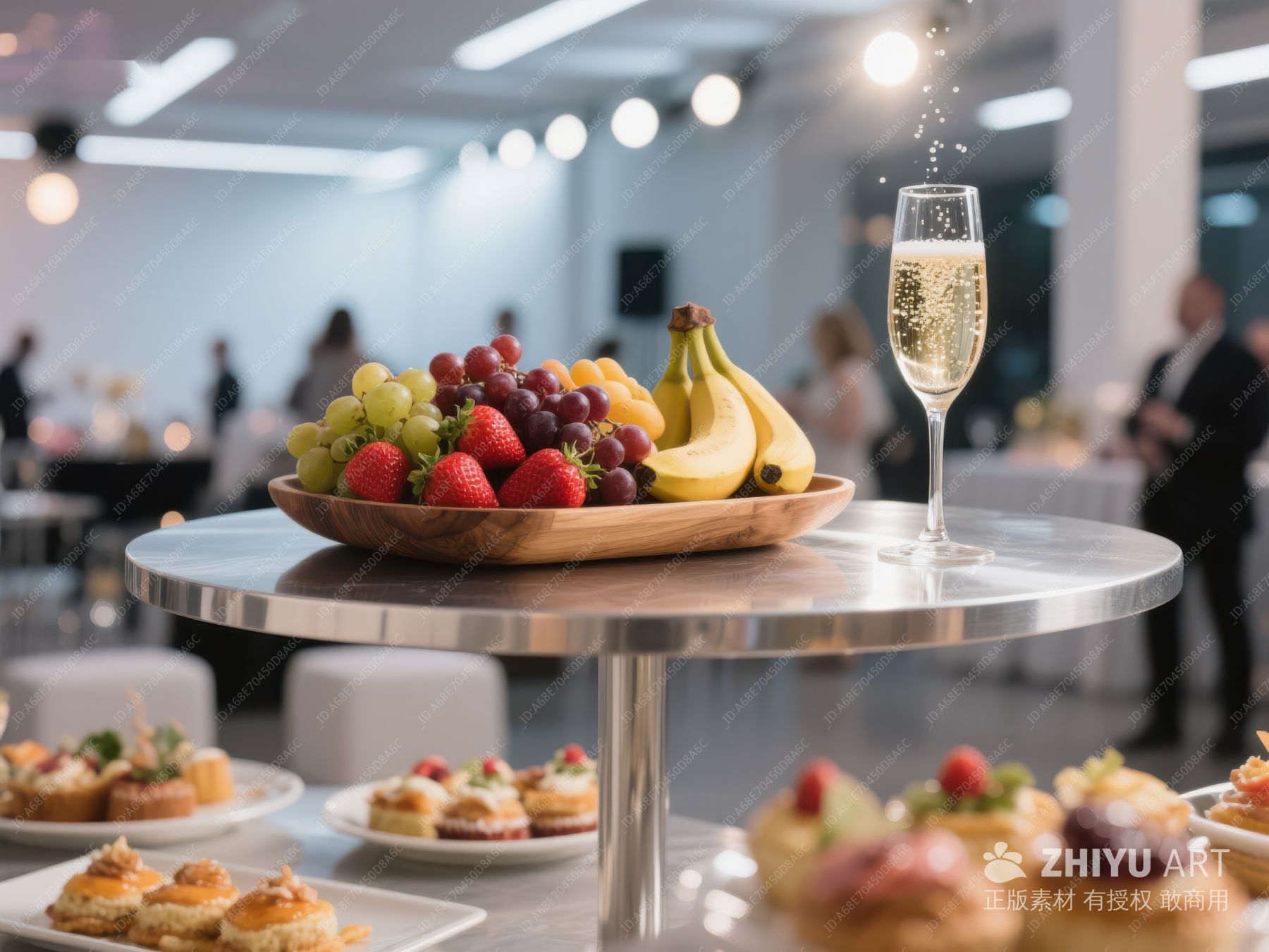 香槟与水果盘,室内聚会场景 648