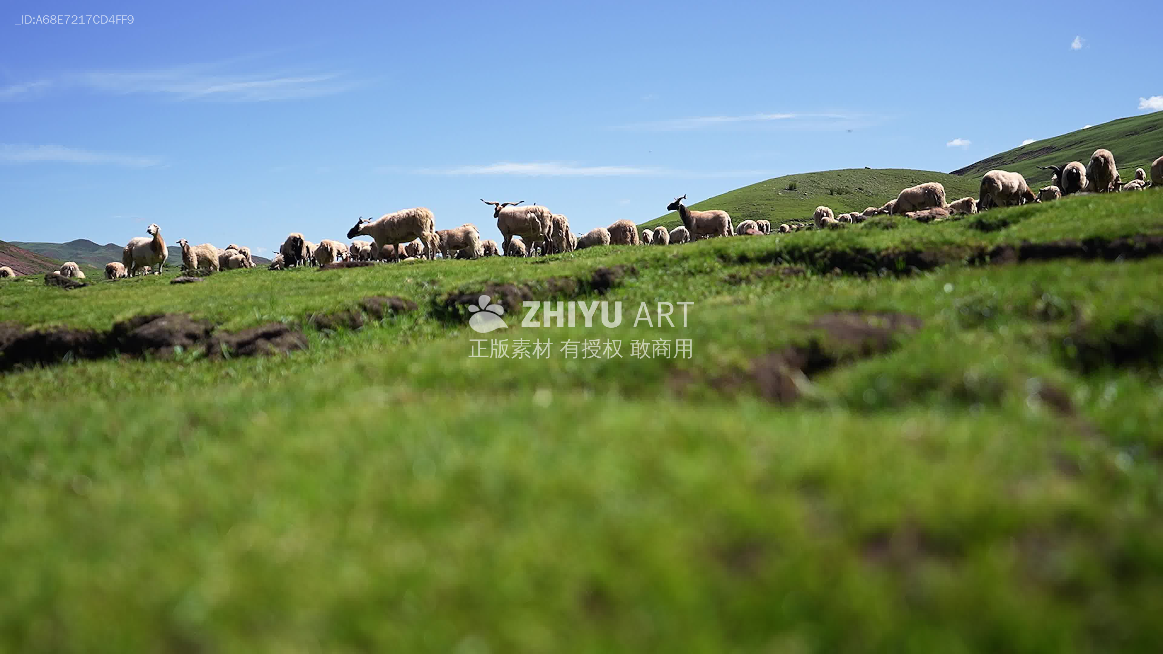 牛羊群在绿色草原悠然放牧