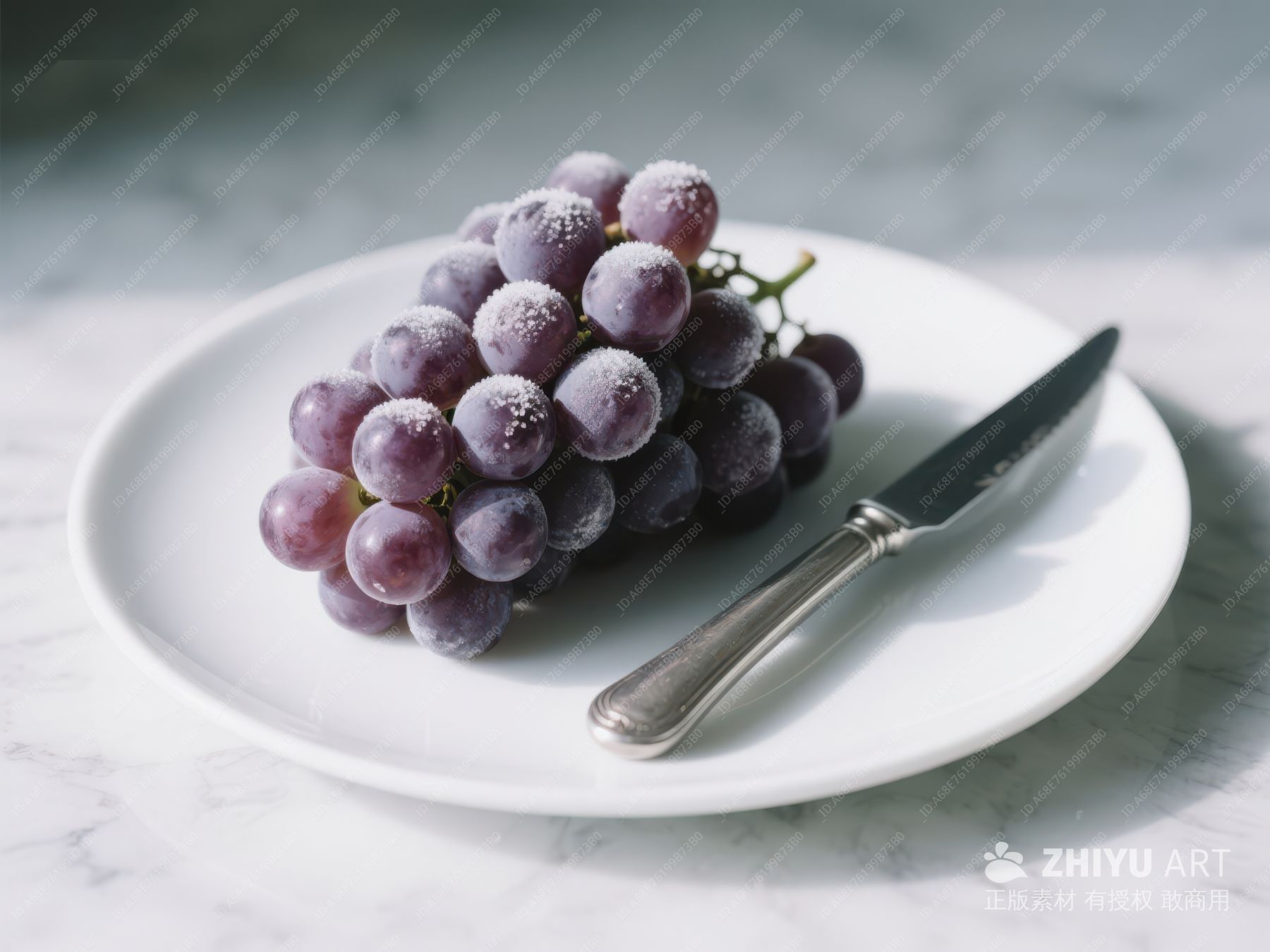 盘中霜冻葡萄与刀具 301