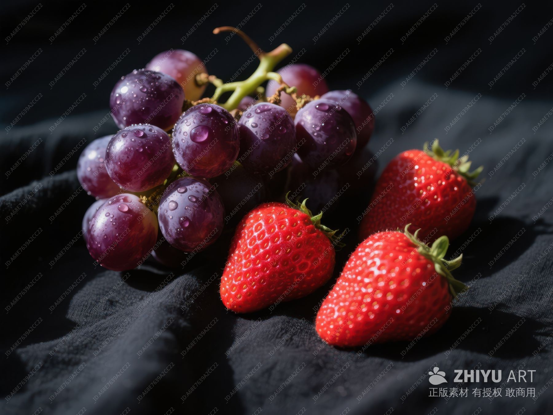 新鲜草莓与葡萄的静物组合 614