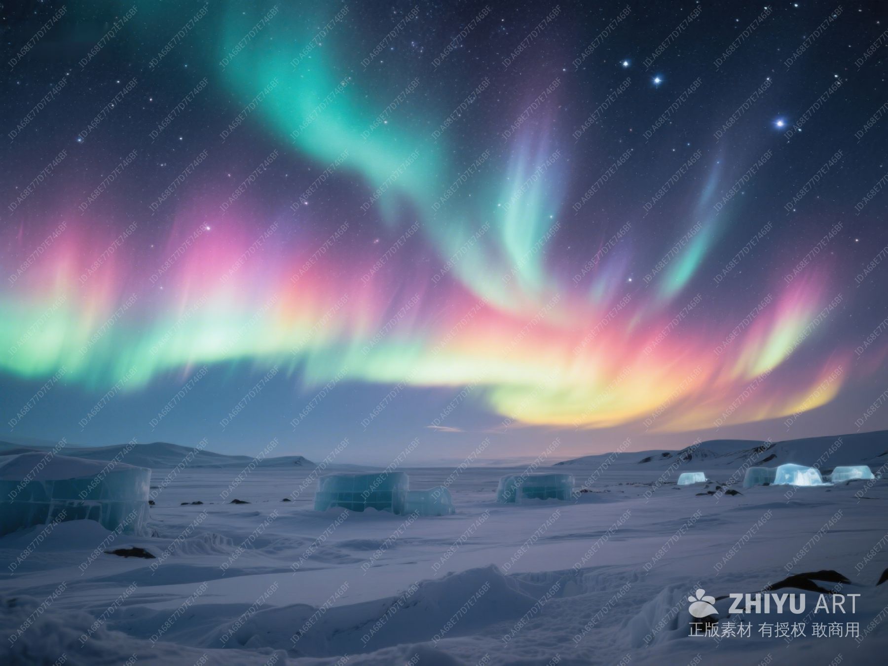 极光下的冰裂景观 38