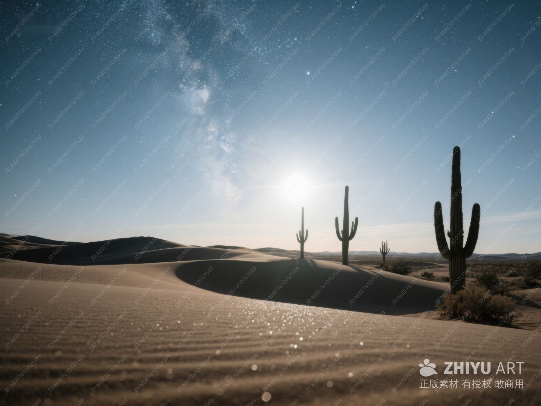 沙漠夜景:星空下的沙丘与仙人掌 90
