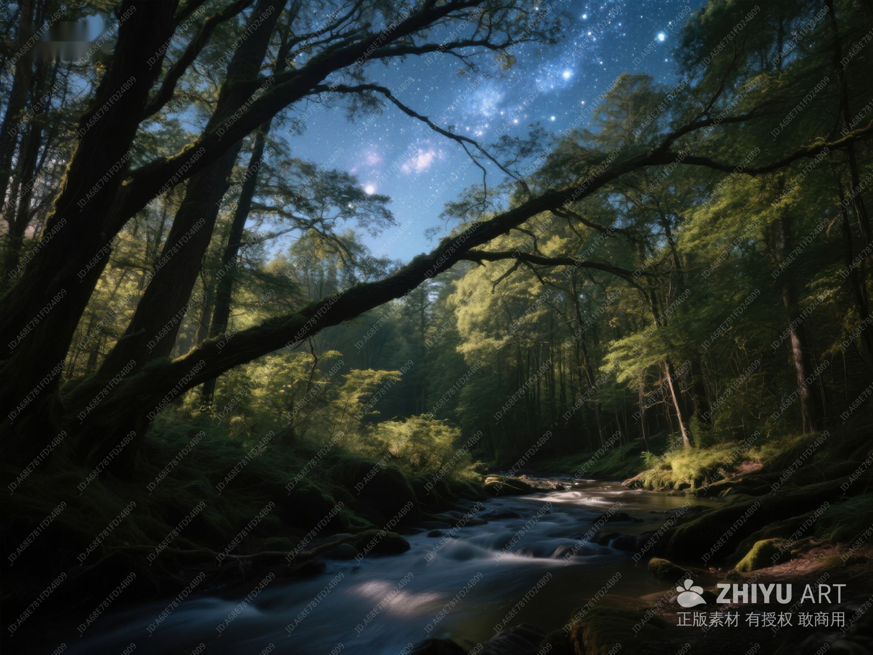 月夜森林溪流 588