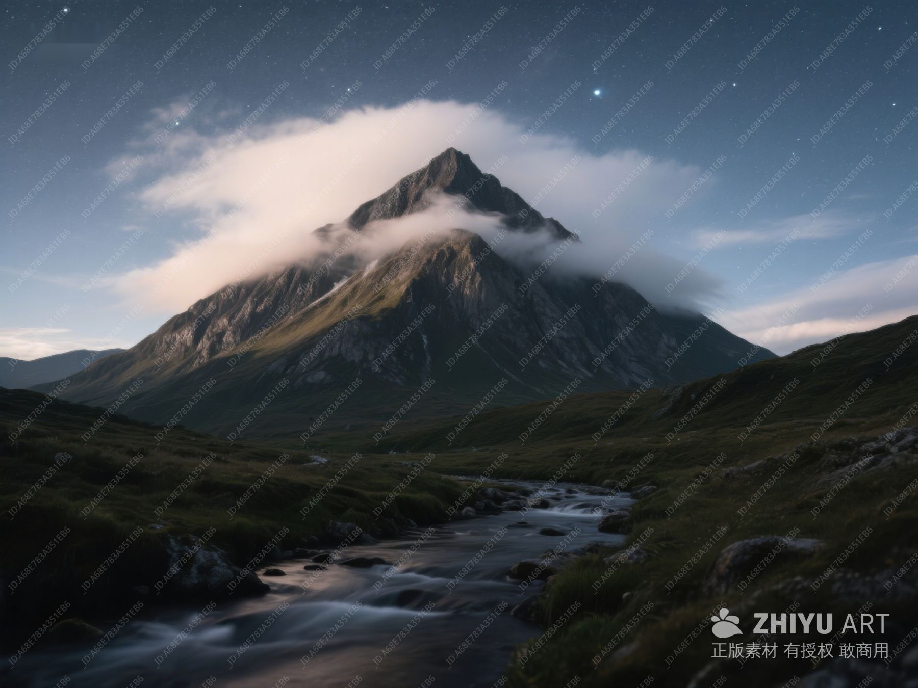 夜幕下的山峰与溪流 509