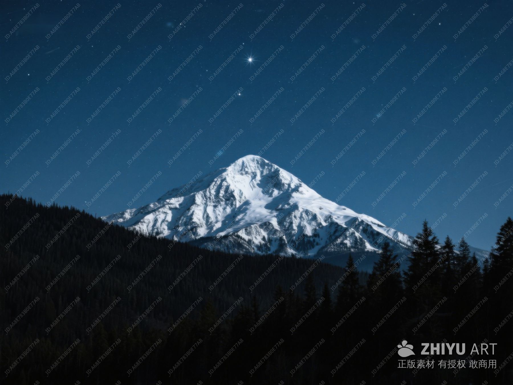 夜幕下的雪山与森林 514