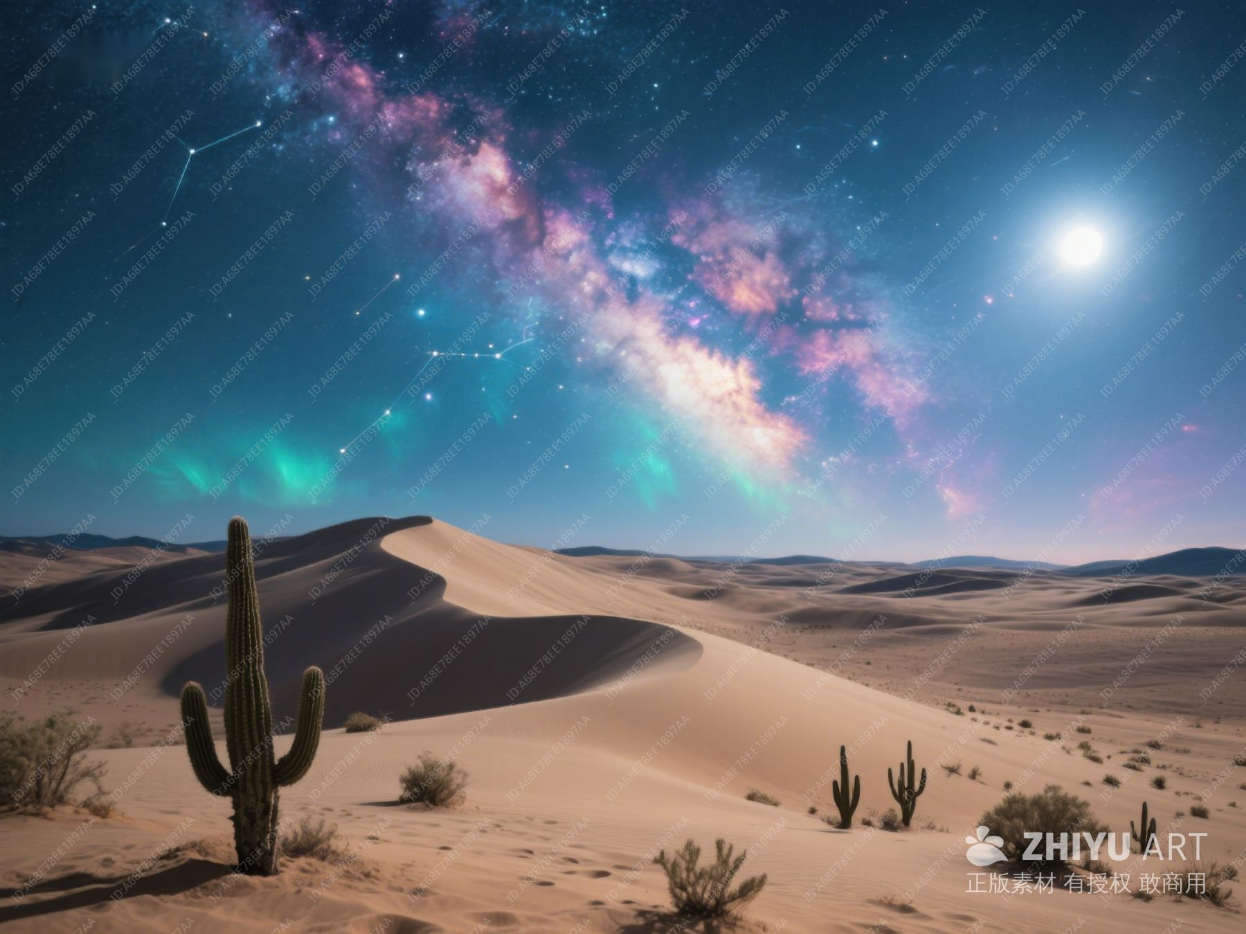 沙漠夜景:星空下的沙丘与仙人掌 90