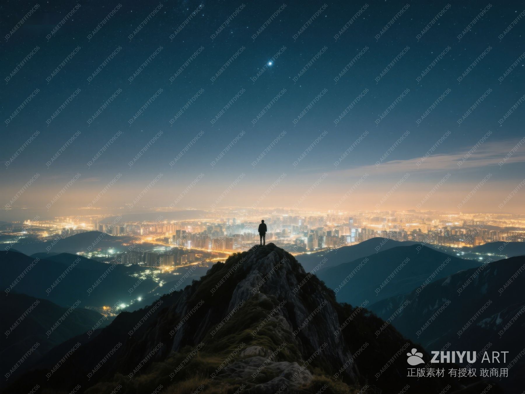 山顶夜景,一人俯瞰城市灯火 135