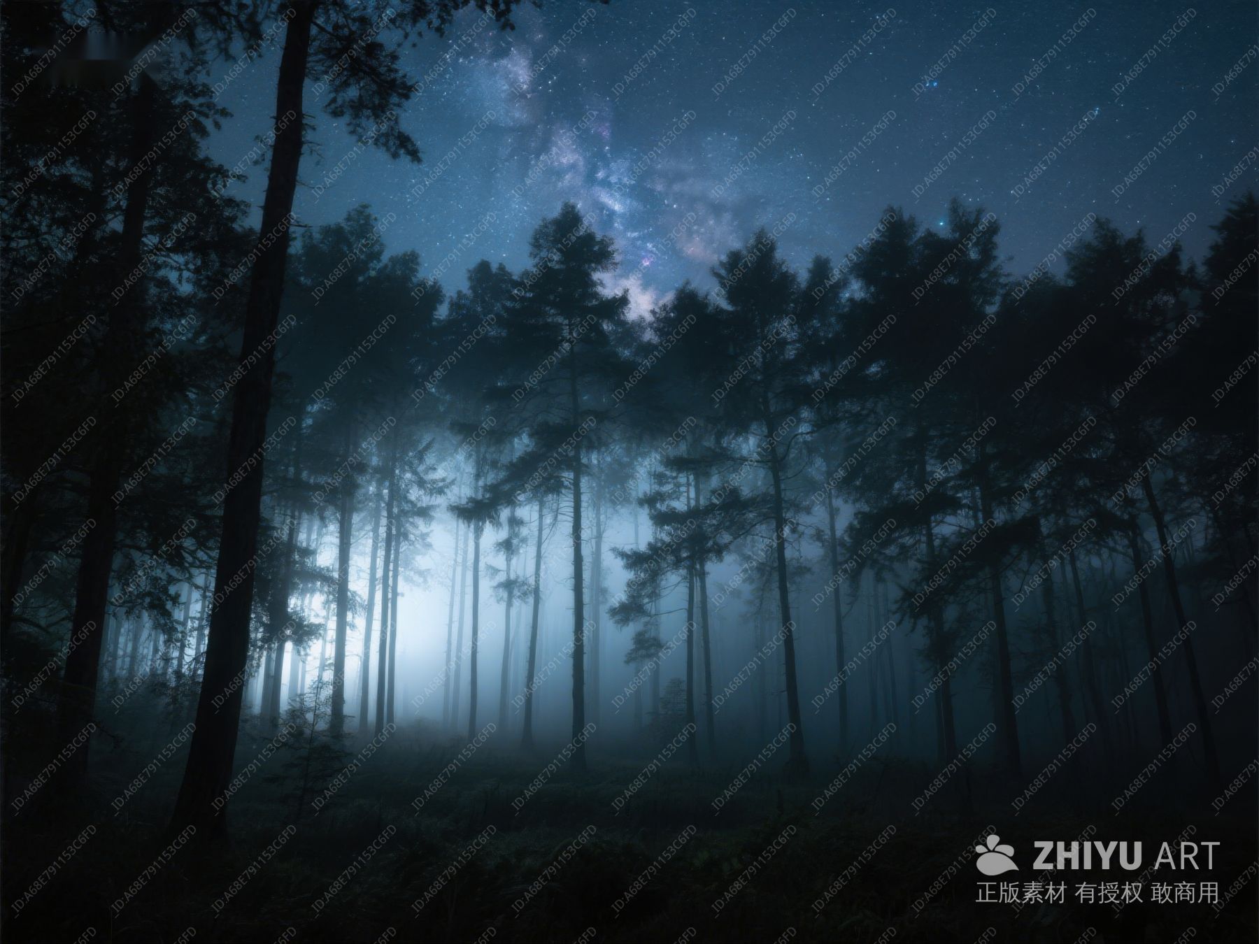 夜幕森林,星光与雾气交织 406