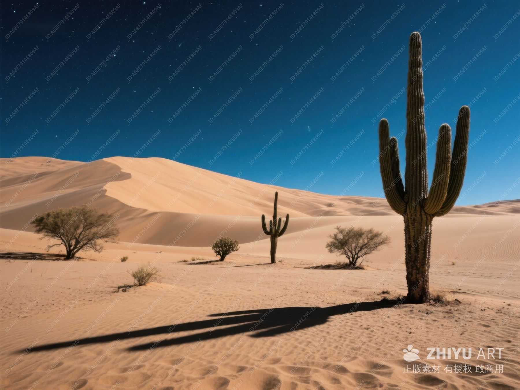 夜幕下的沙漠沙丘与仙人掌 501
