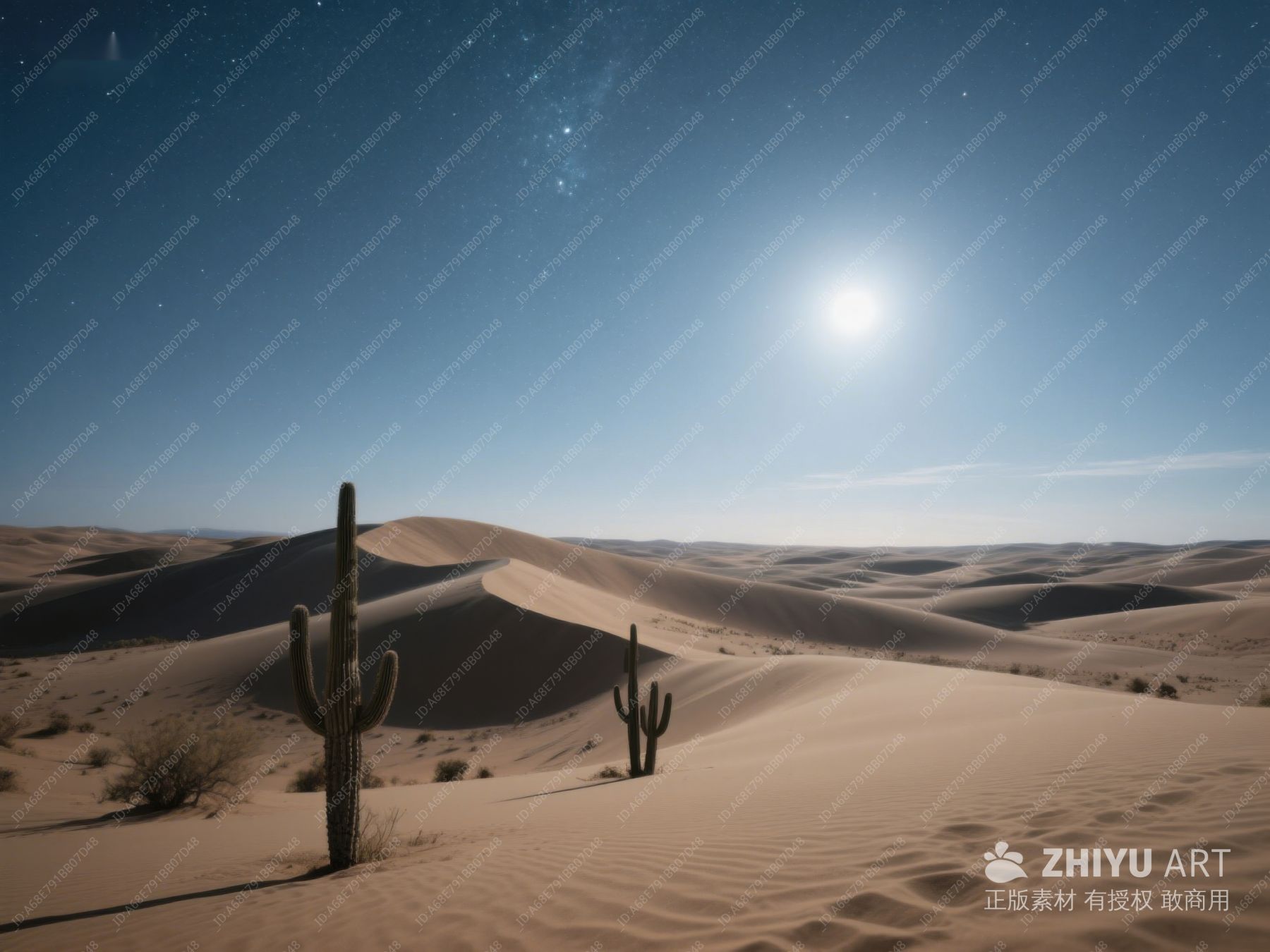 沙漠夜景:星空下的沙丘与仙人掌 90