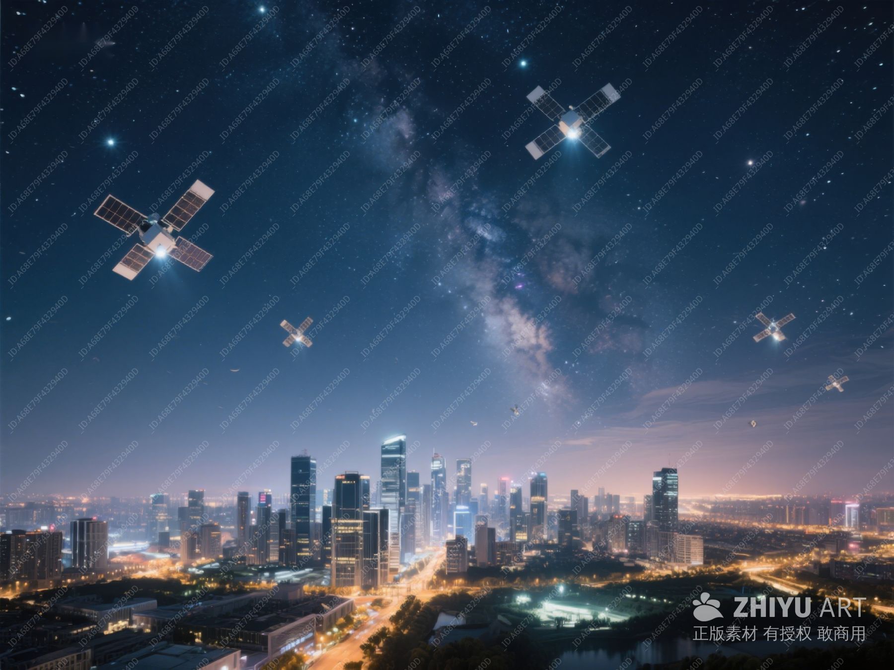 夜空下的城市与卫星 301