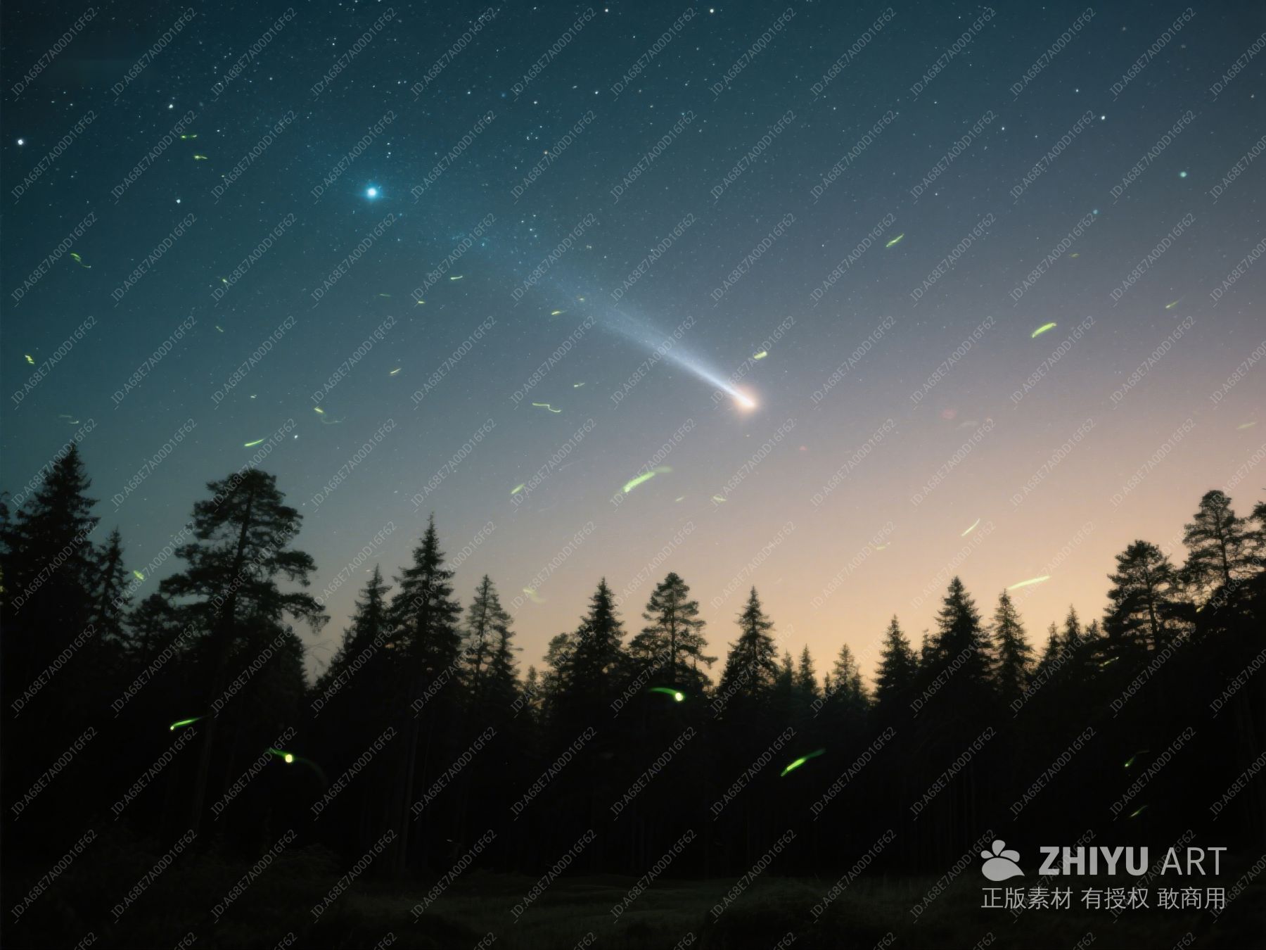 夜空流星划过,森林静谧如梦 253