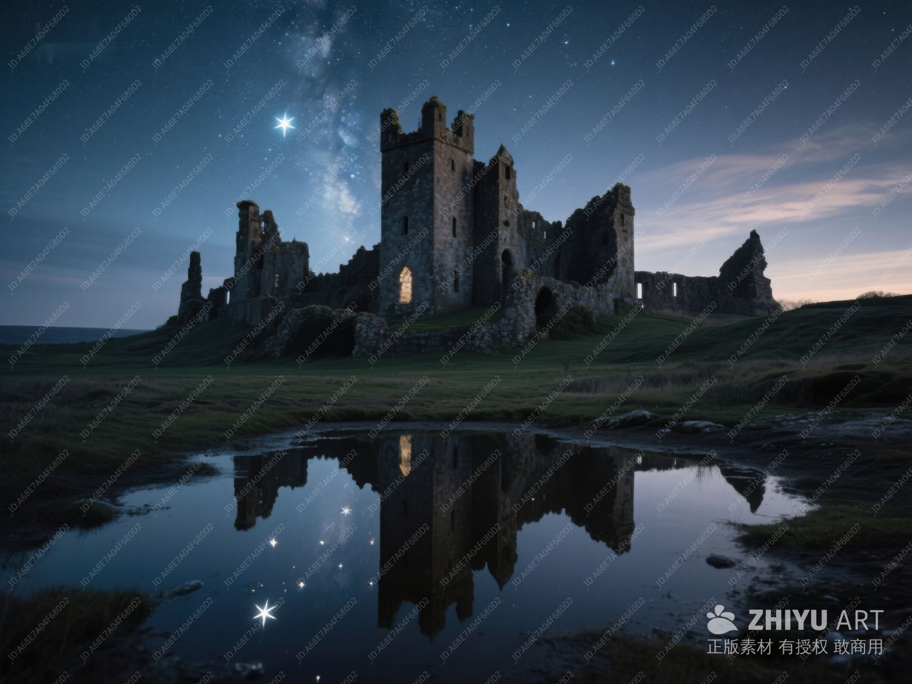 夜空下的古堡遗迹与星河倒影 311