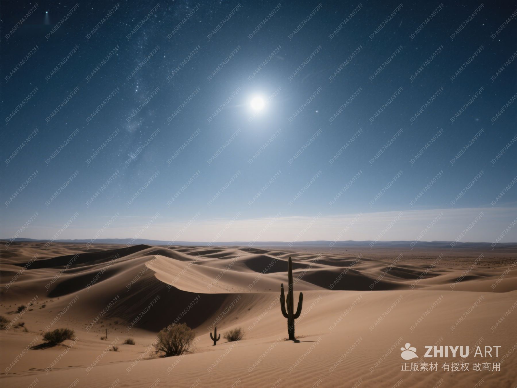 沙漠夜景:星空下的沙丘与仙人掌 90