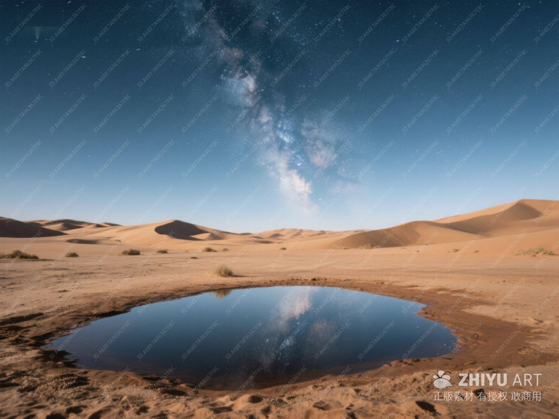 沙漠夜景:沙丘与星空下的静谧池塘 80