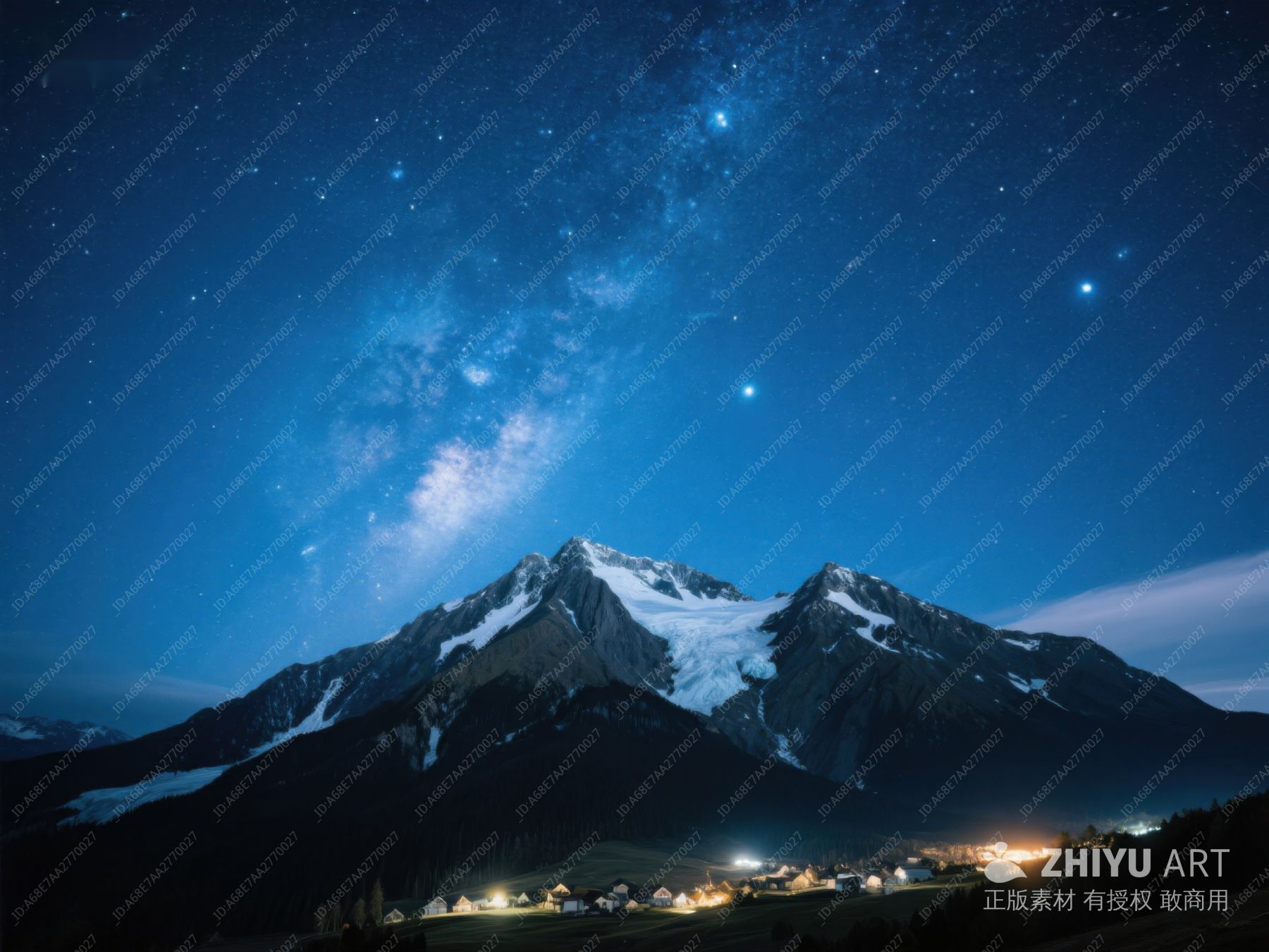 夜空银河下的雪山与村落 375