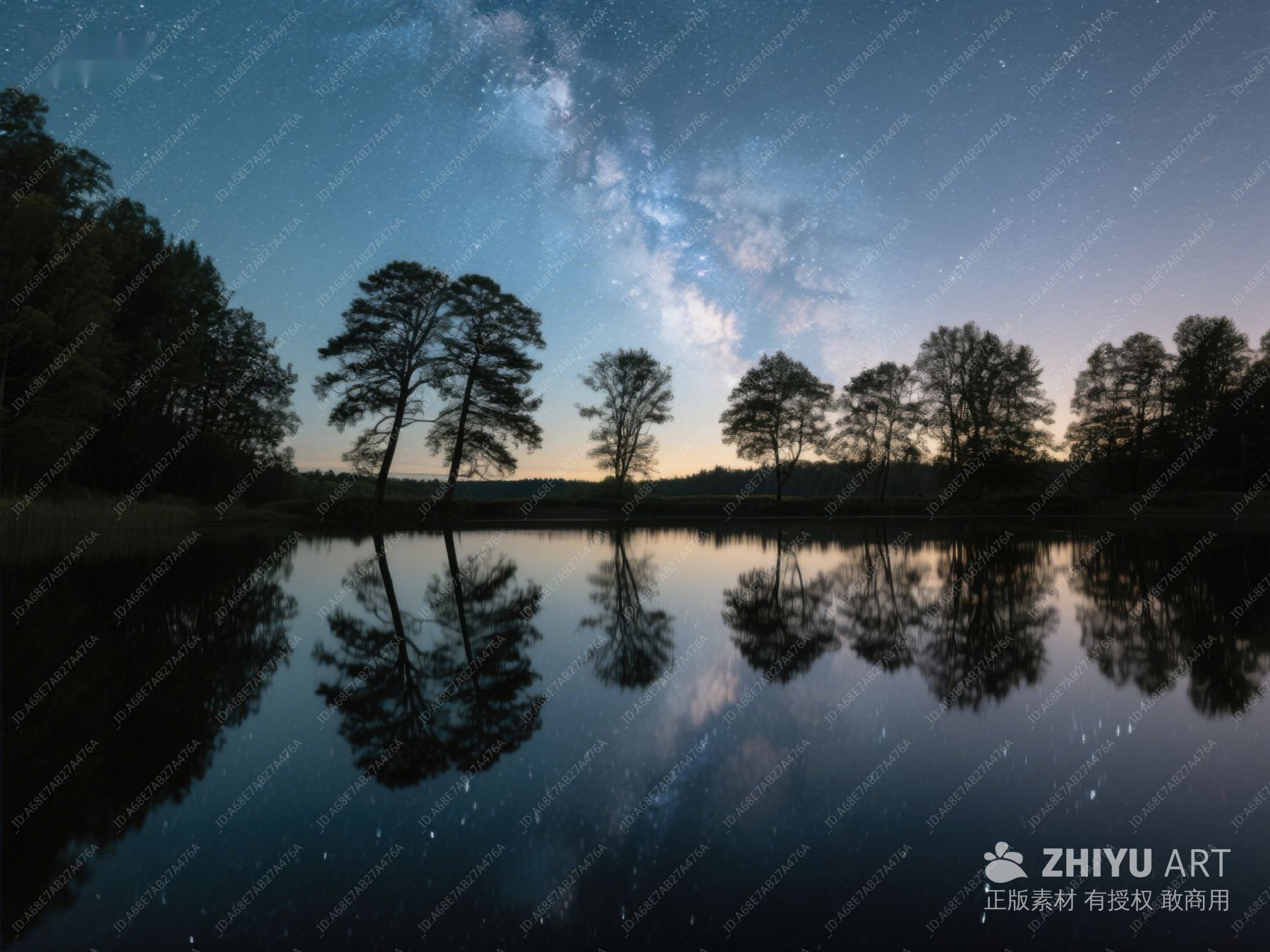 夜空银河映湖面,树木倒影如画 379