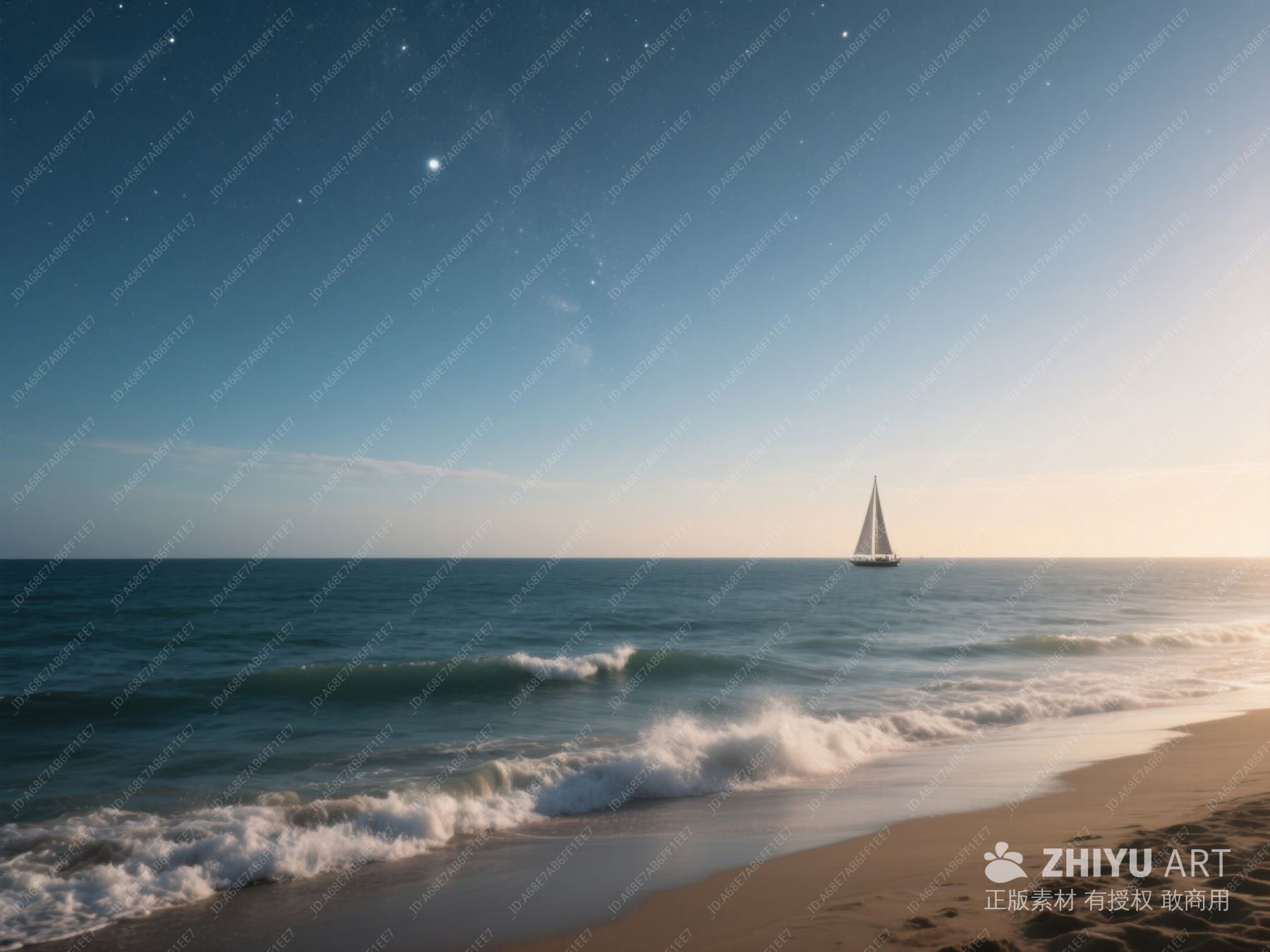 夜幕下的帆船与海滩 427