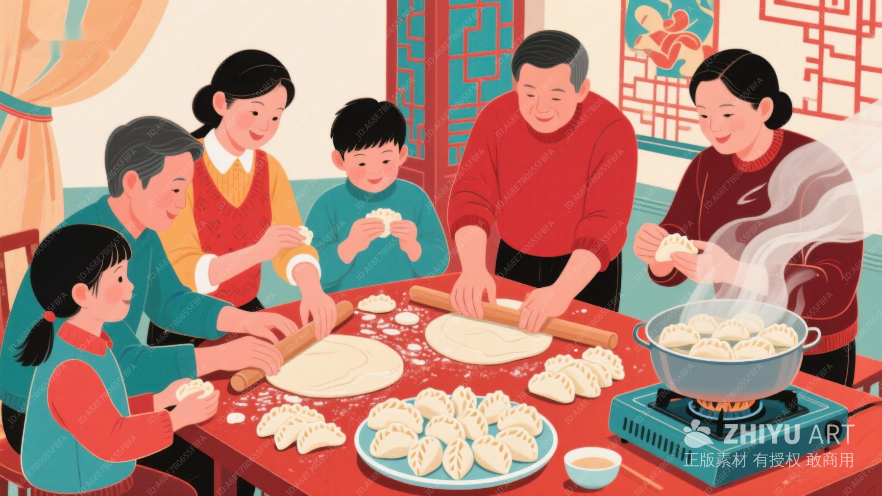 家庭围坐包饺子,共庆节日温馨时刻 550