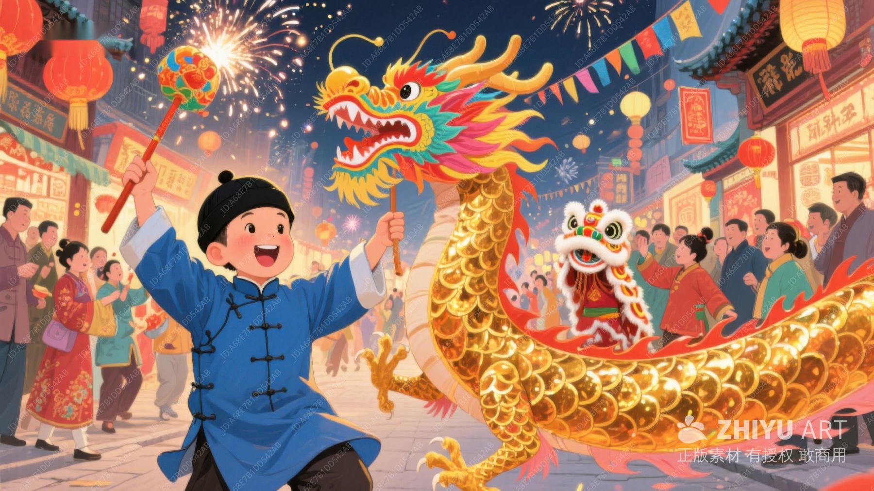 欢庆春节:舞龙舞狮与孩童笑颜 390