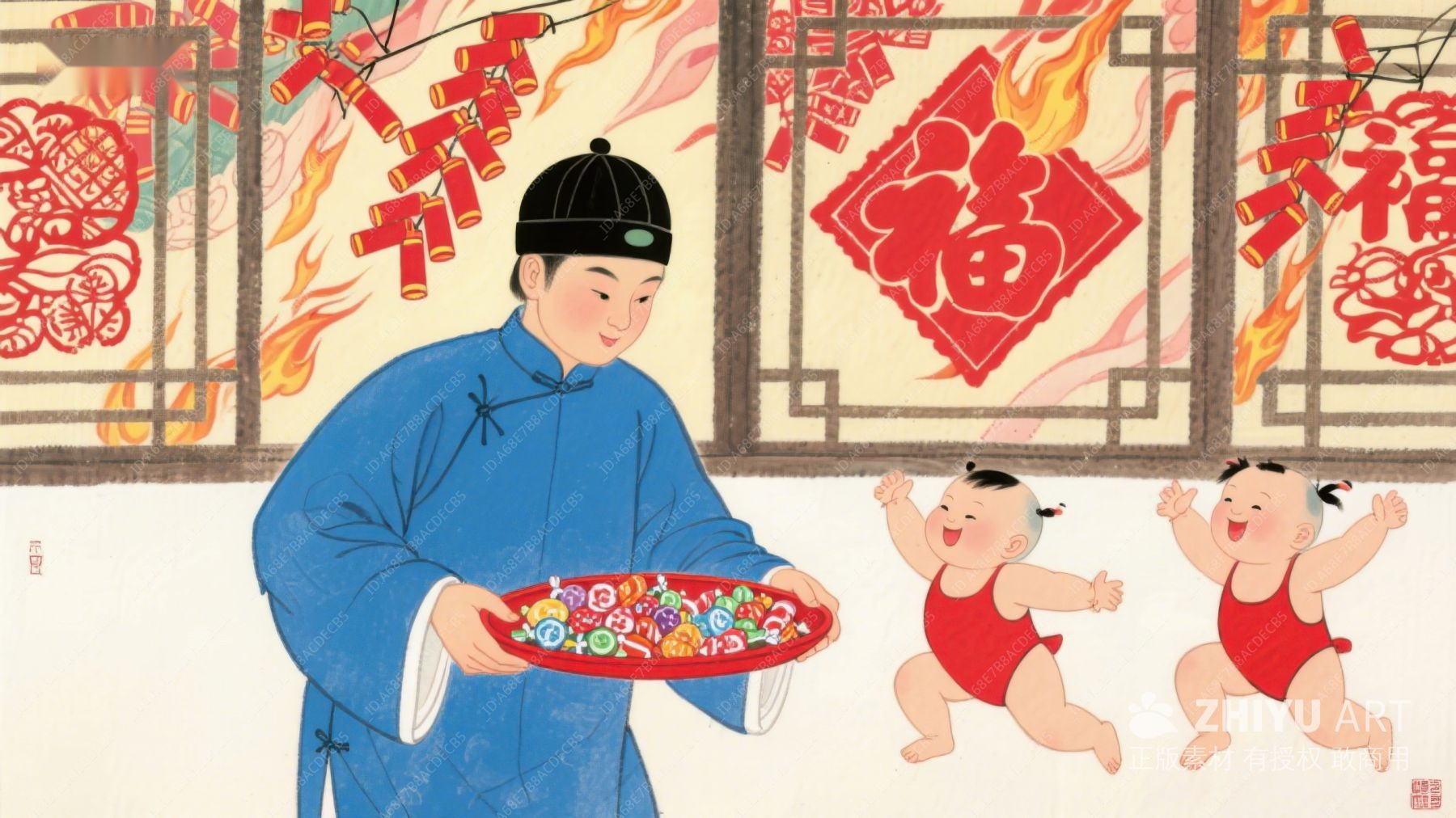 欢庆春节,女子手持福字与孩童共度佳节 368