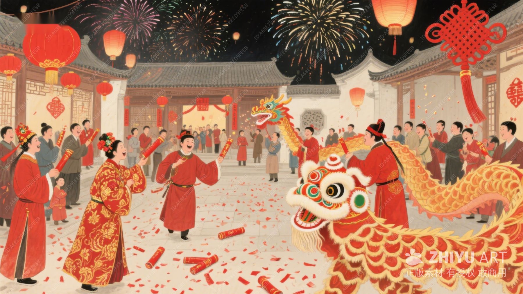春节庆典:烟花璀璨,舞狮欢腾 119