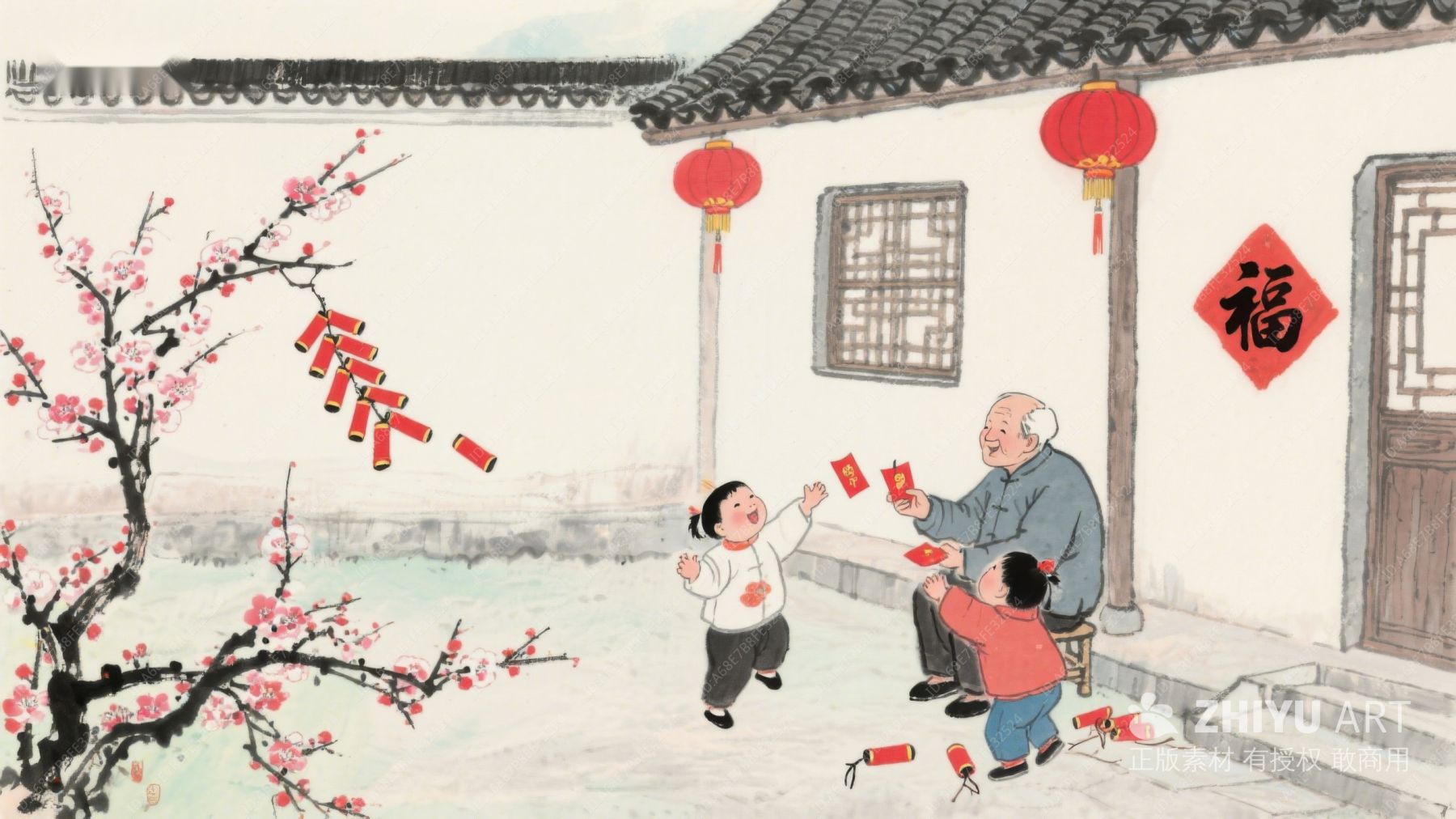 温馨家庭场景:长辈与孩童共享红包时刻 899
