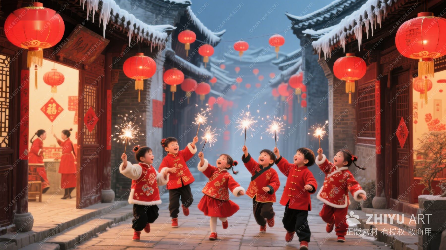 孩童欢庆春节,手持烟花笑逐颜开 263