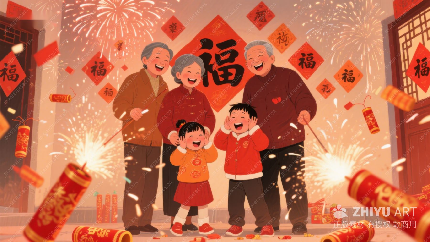 雪夜空中飞翔的驯鹿与礼物雪橇 387