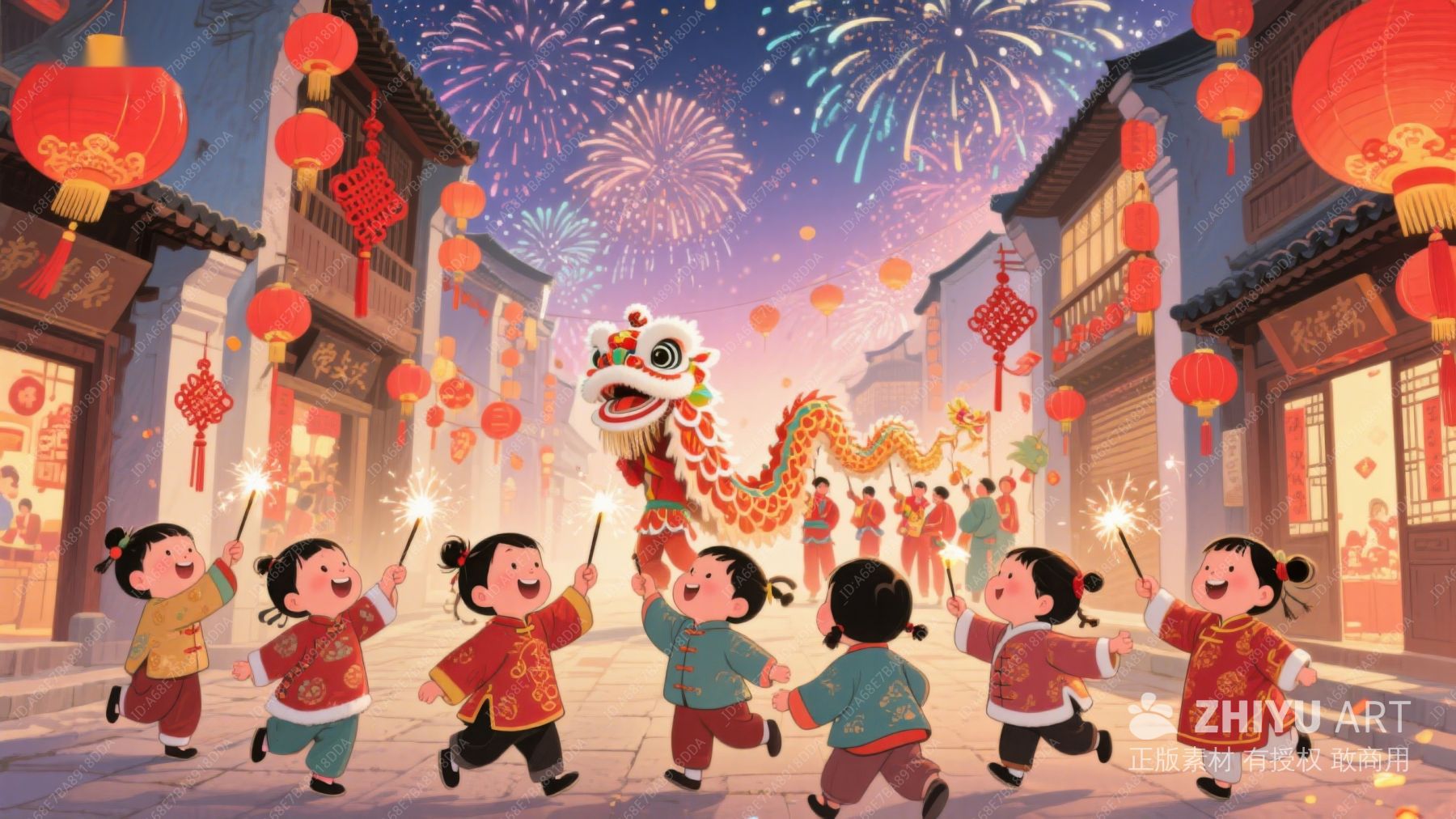 欢庆春节:舞龙舞狮与孩童笑颜 390